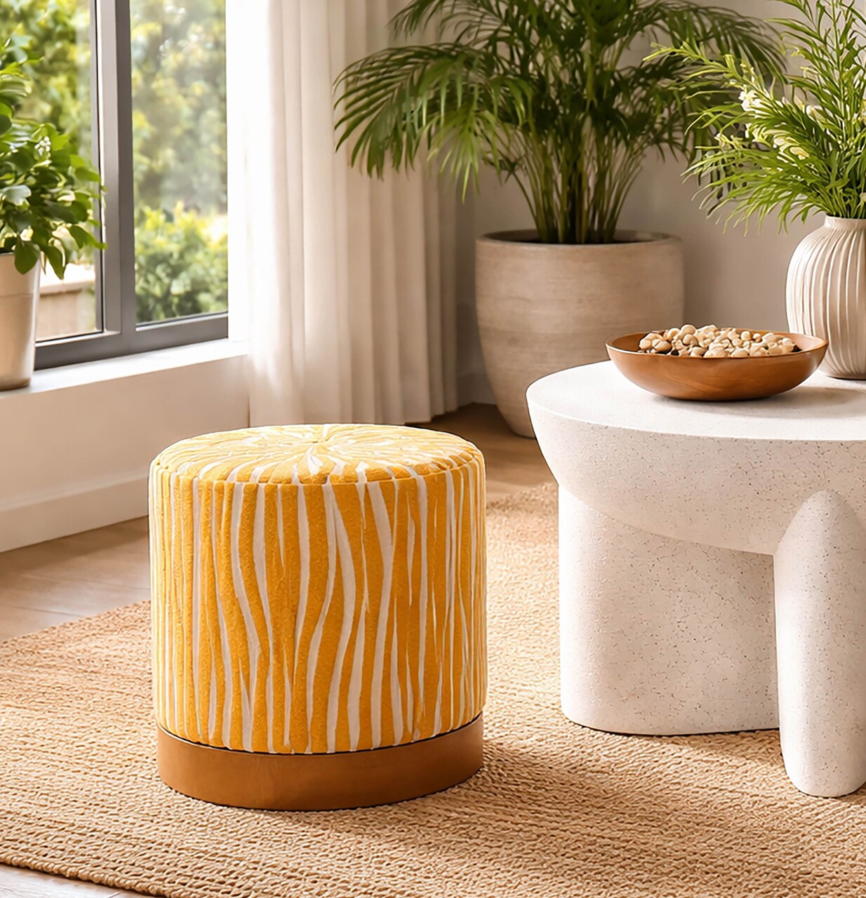 Taburet, Mauro Ferretti, Savana, 40x40 cm, placaj/poliester, mustar/maro