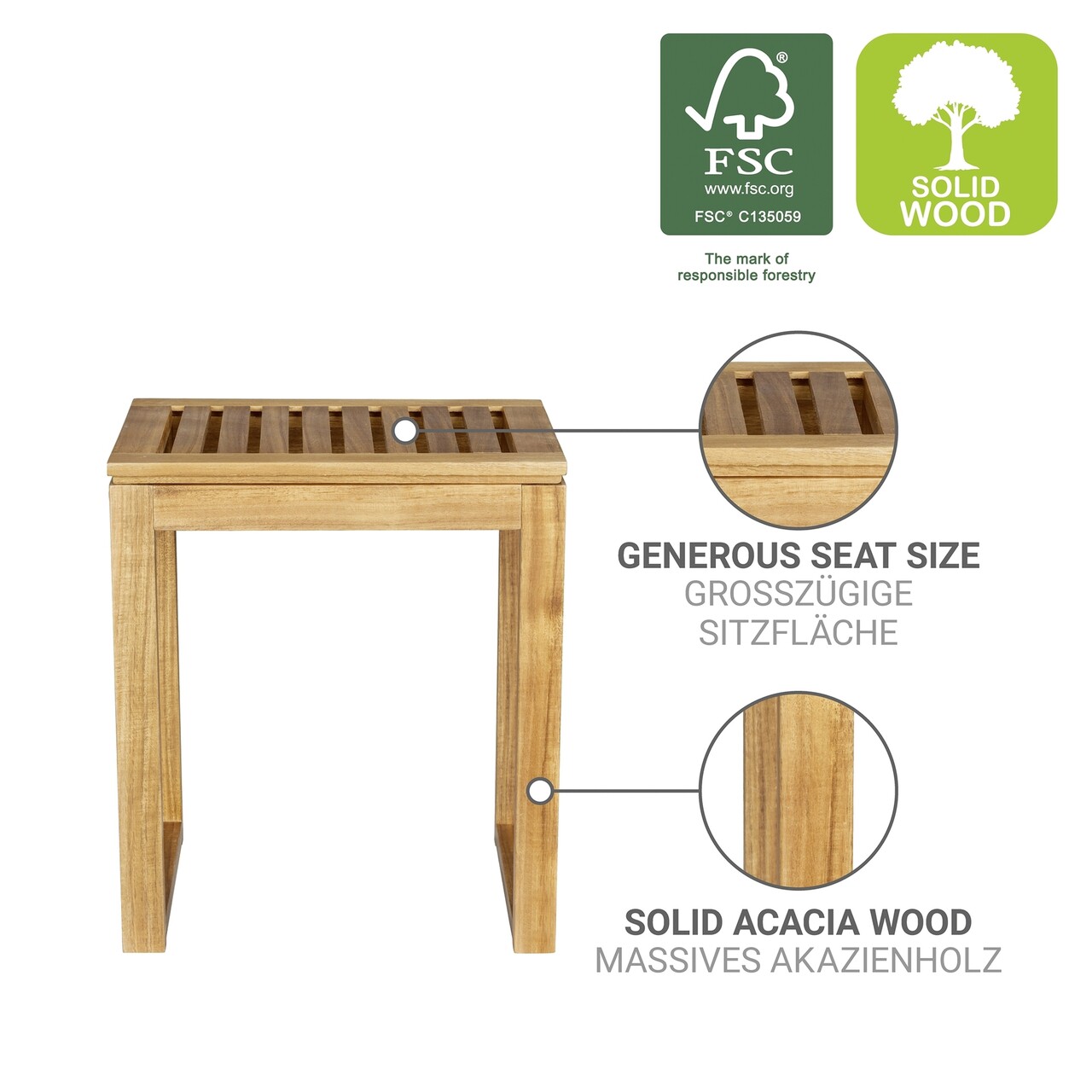 Taburet pentru baie Fondi, Wenko, 60x30x39 cm, lemn acacia, maro