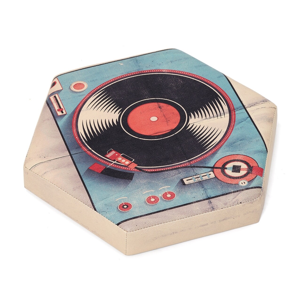 Taburet pliabil cu spatiu de depozitare Hexagonal Vinil, Heinner Home, 43 x 38 x 38 cm, PVC, multicolor