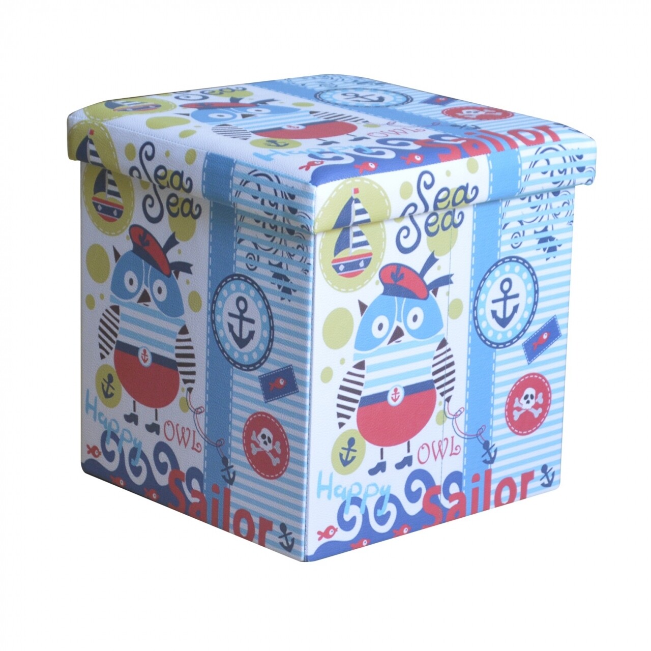 Taburet pliabil cu spatiu de depozitare Seaman Owl, Heinner Home, 37.5 x 38 x 38 cm, PVC, multicolor