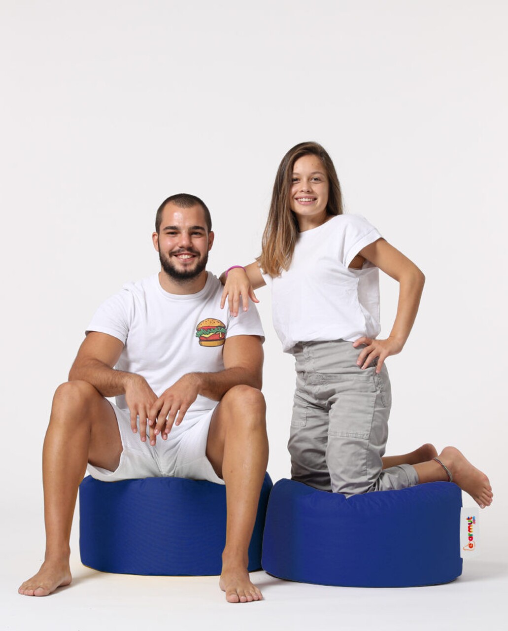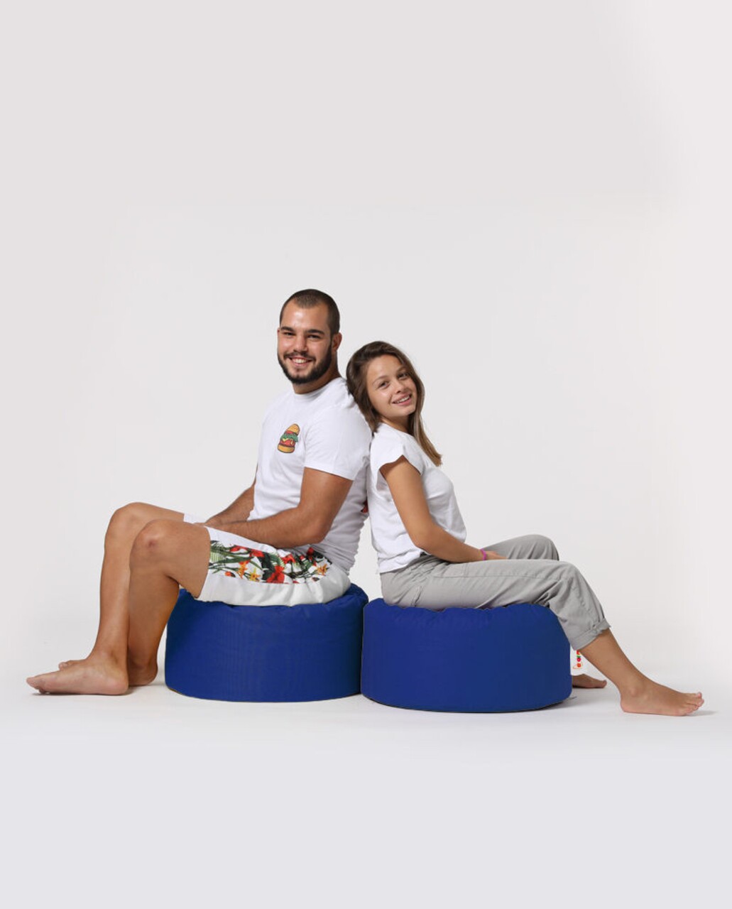Taburet puf, Round Pouf, Ferndale, 55x30 cm, poliester impermeabil, albastru