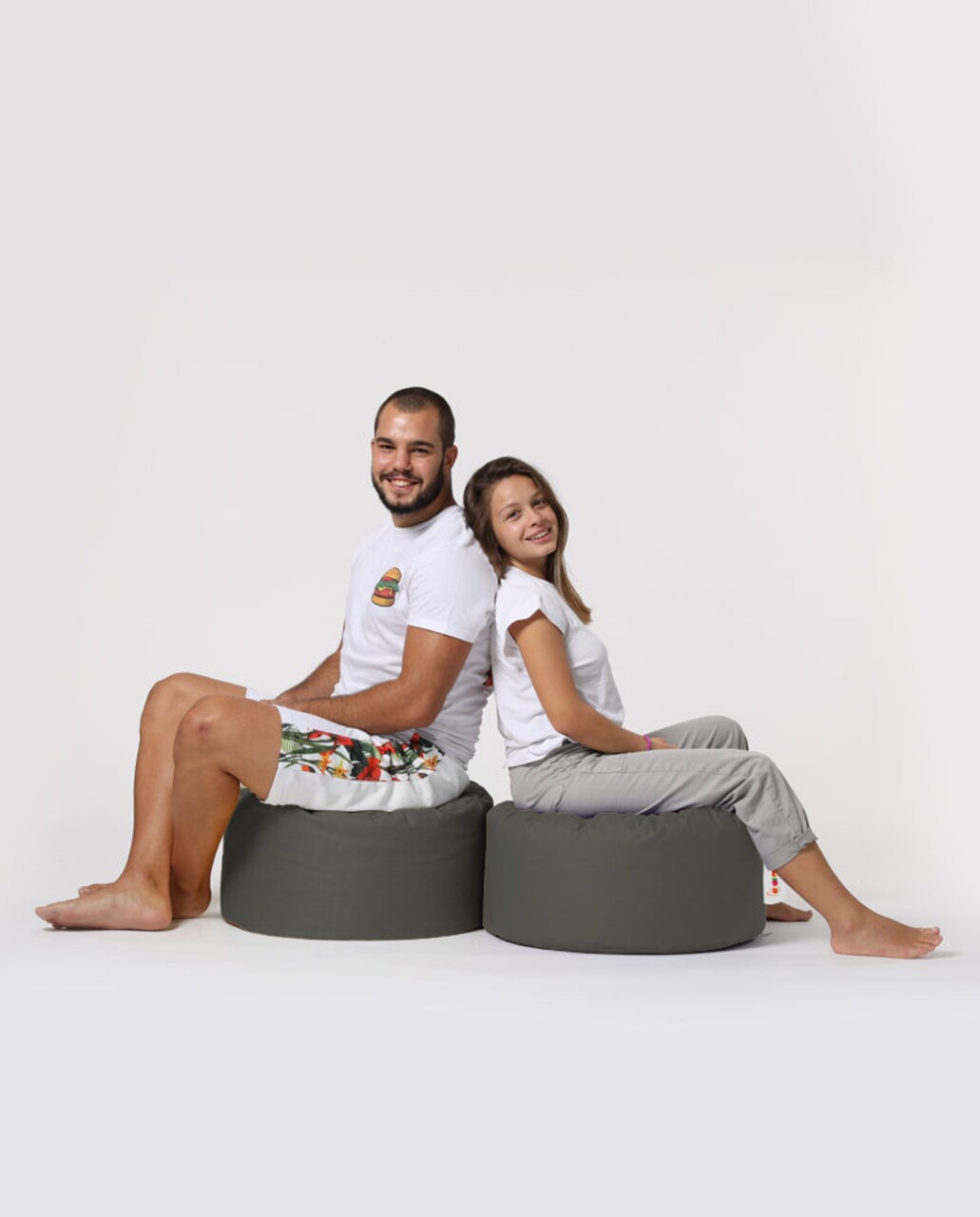 Taburet puf, Round Pouf, Ferndale, 55x30 cm, poliester impermeabil, gri fumuriu