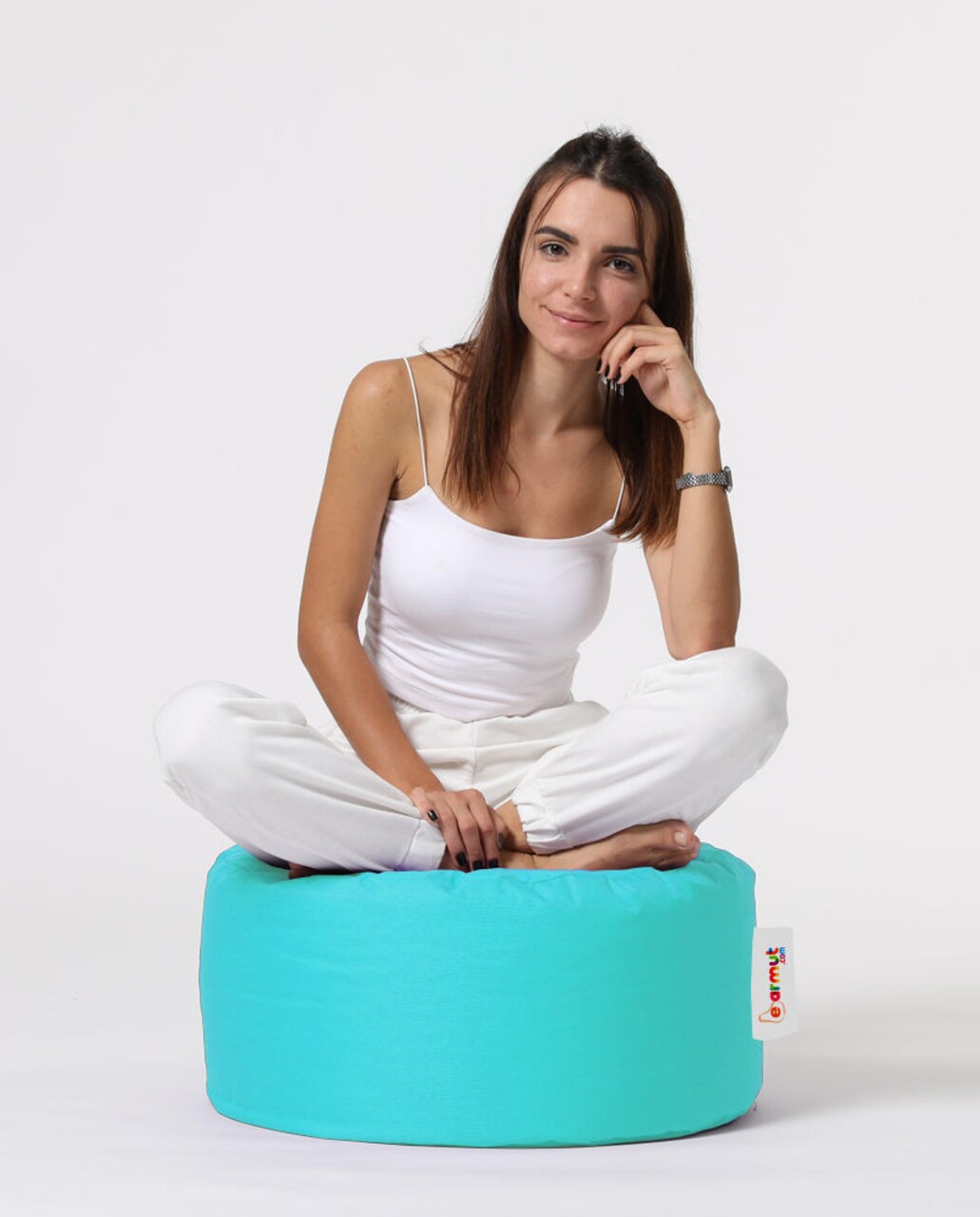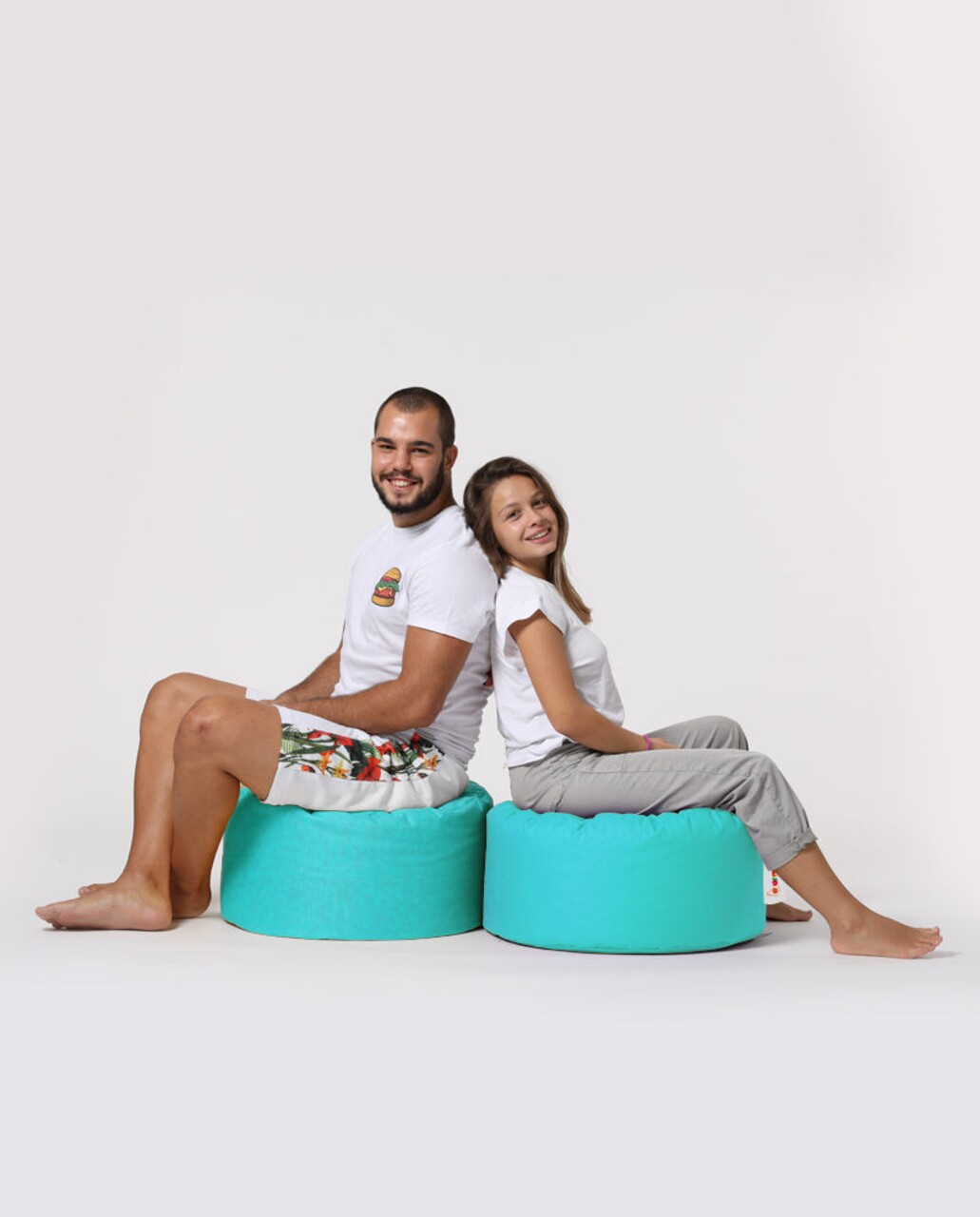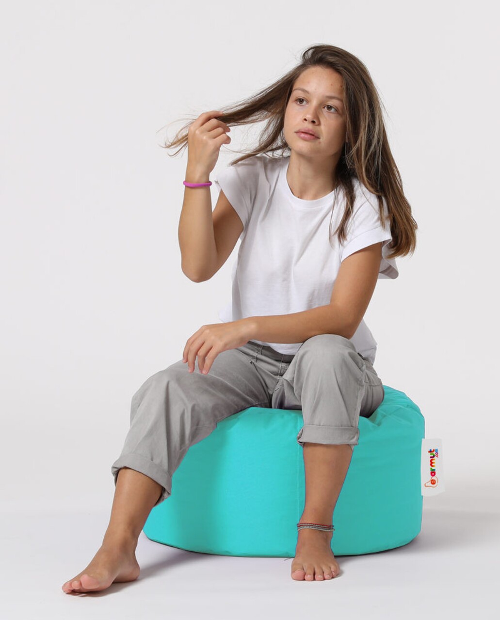 Taburet puf, Round Pouf, Ferndale, 55x30 cm, poliester impermeabil, turcoaz