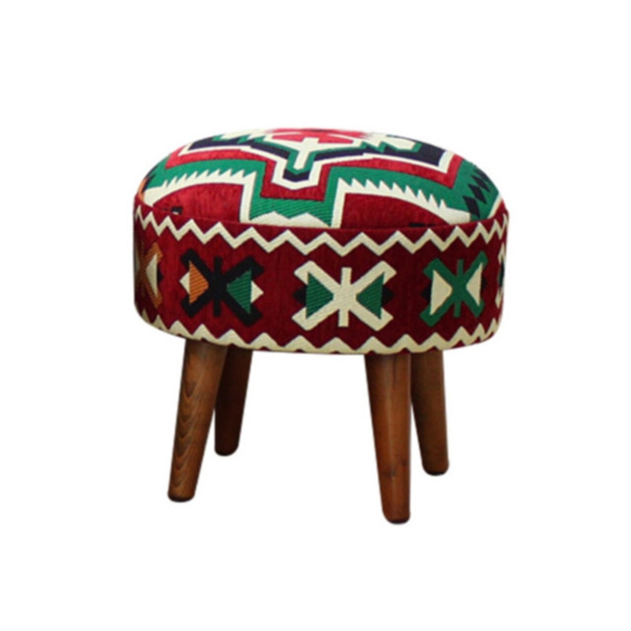 Taburet Rotund Etnic Urartu, Heinner, 46x42 cm, bumbac, rosu