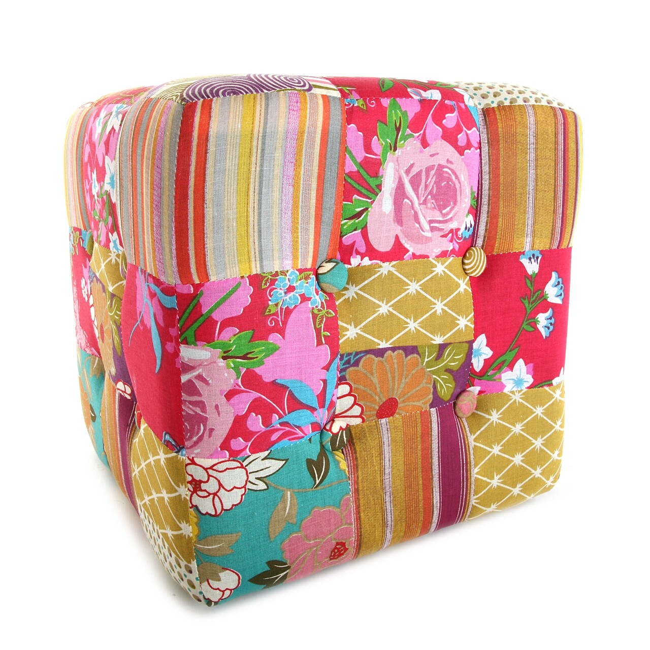 Taburet, Versa, Squared Patchwork, 35 x 35 x 35 cm, lemn/bumbac, multicolor