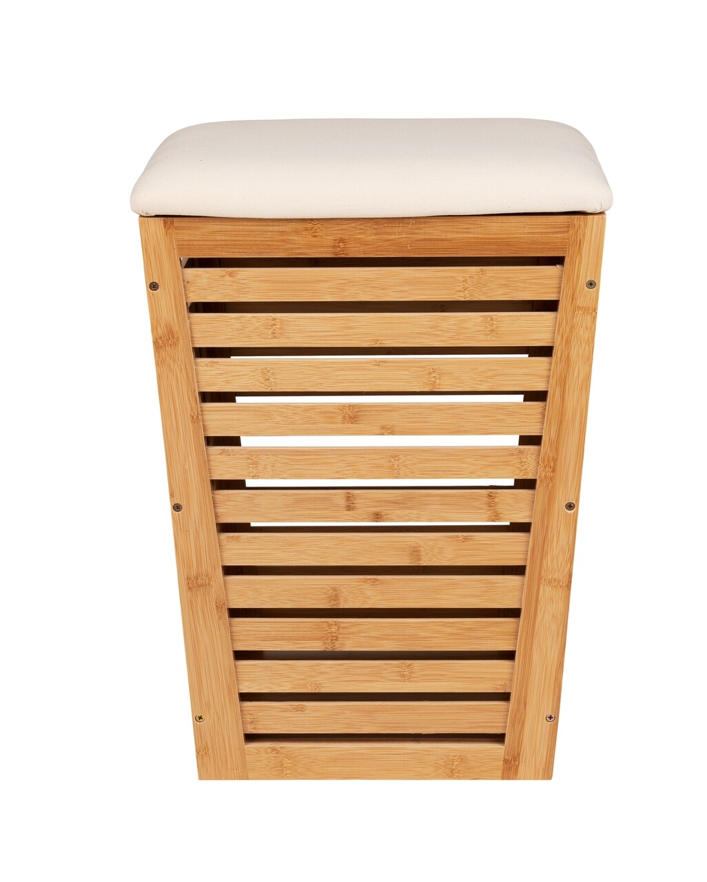 Taburet, Wenko, Bambusa, cos de rufe inclus, 55 L, 40 x 56 x 40 cm, lemn de nuc/bumbac/poliester, natur/bej