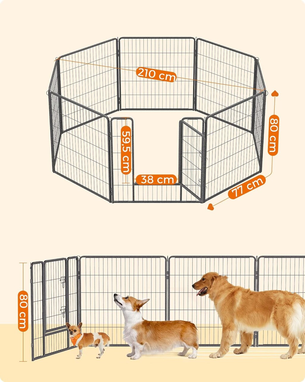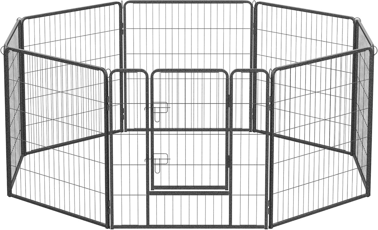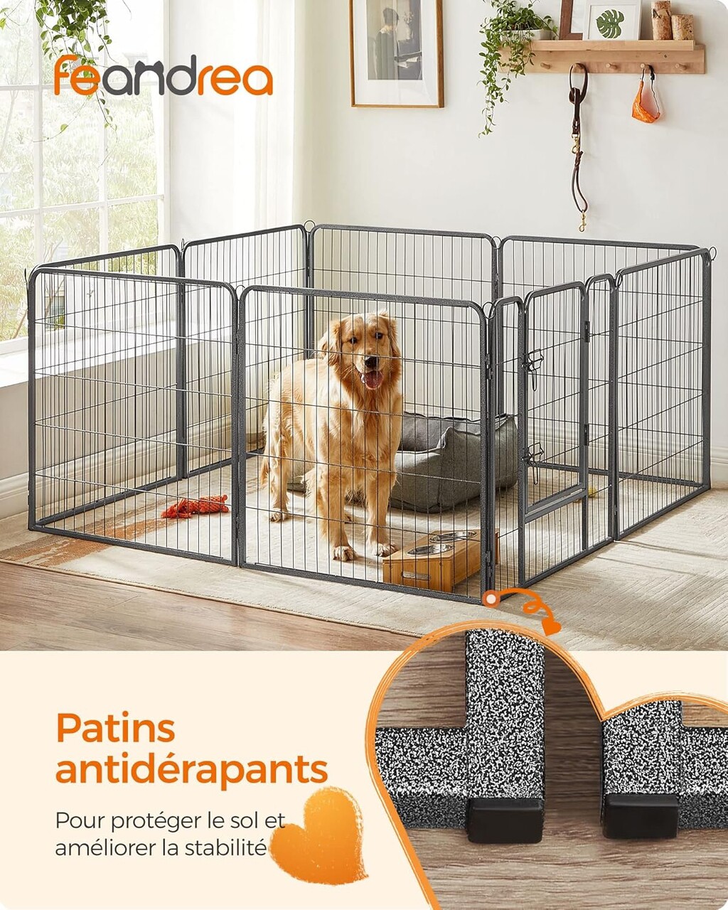 Tarc pentru caini din 8 panouri de fier, Feandrea, pliabil, 240x80x80 cm, gri