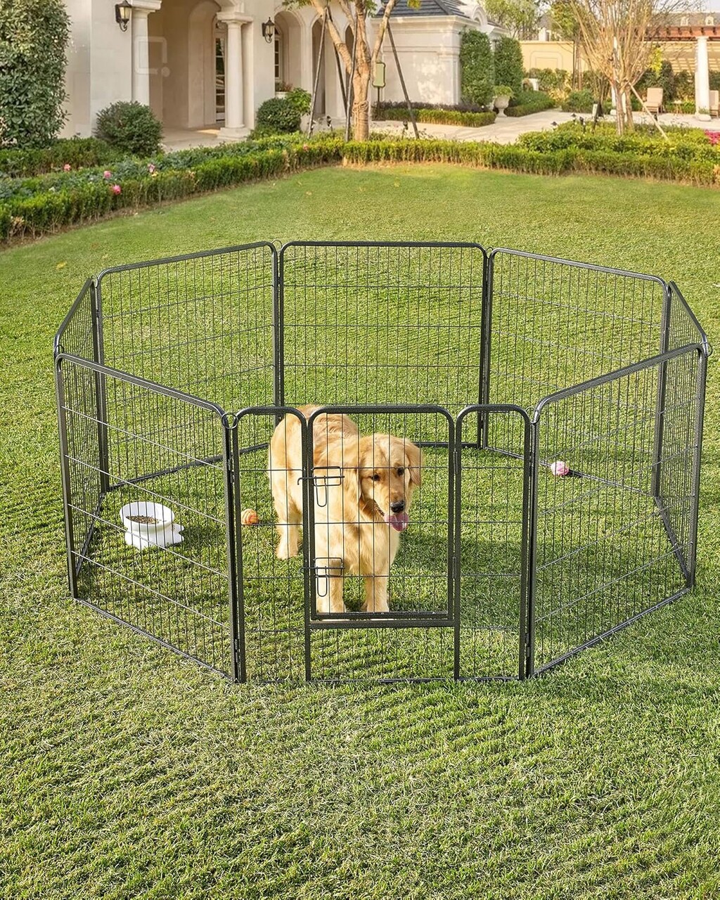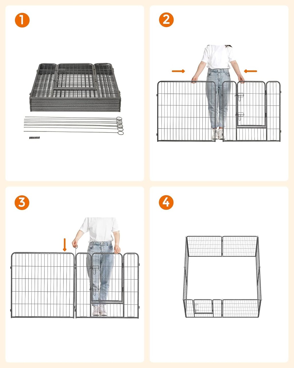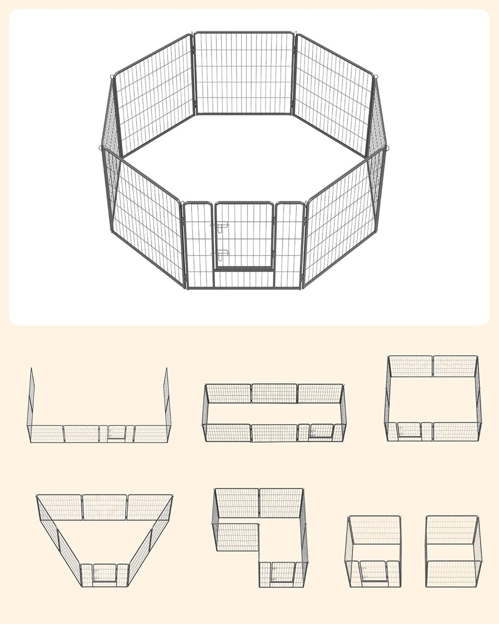 Tarc pentru caini din 8 panouri de fier, Feandrea, pliabil, 240x80x80 cm, gri