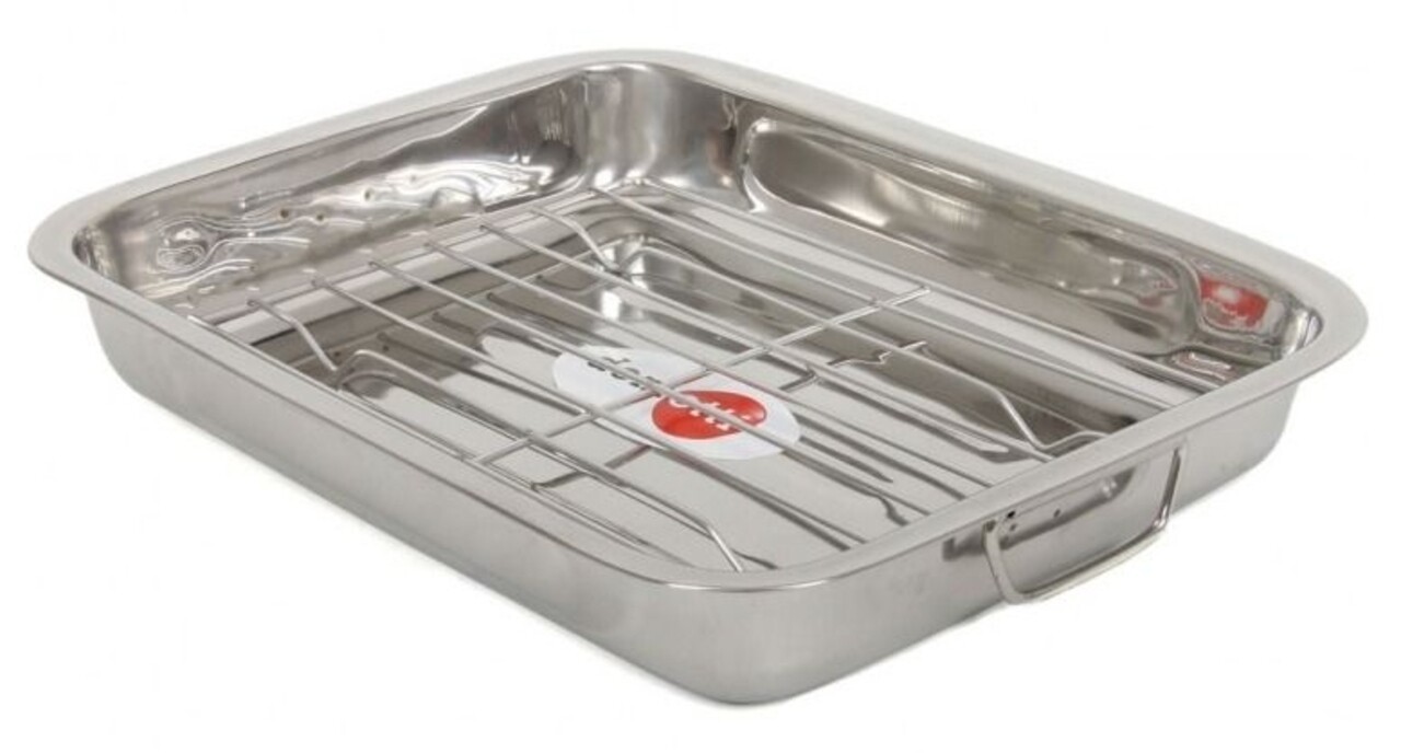 Tava pentru cuptor cu gratar, din otel inoxidabil. Disponibila in diferite dimensiuni, aceasta este usor de curatat si manevrat. Ideala pentru a gati o masa sanatoasa la cuptor, acasa, pentru toata familia.