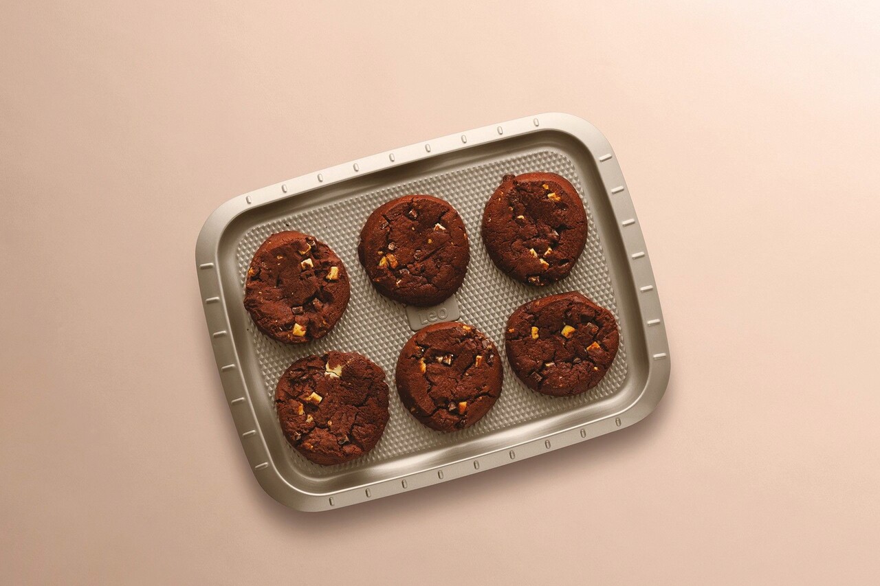 Biscuiti, prajituri sau alte bunatati delicioase, le coaceti cu usurinta la perfectiune cu aceasta tava de copt antiaderenta. Otelul carbonat cu suprafata texturata asigura o coacere uniforma, in timp ce invelisul antiaderent va garanteaza ca puteti indeparta cu usurinta produsele de patiserie atunci cand acestea ies din cuptor. Astfel nu mai exista ramasite arse pe tava si, mai ales, curatarea este foarte usoara! Dimensiuni interioare: 34 x 25.5 x 2 cm. Dimensiuni exterioare: 38 x 28.5 x 2 cm.