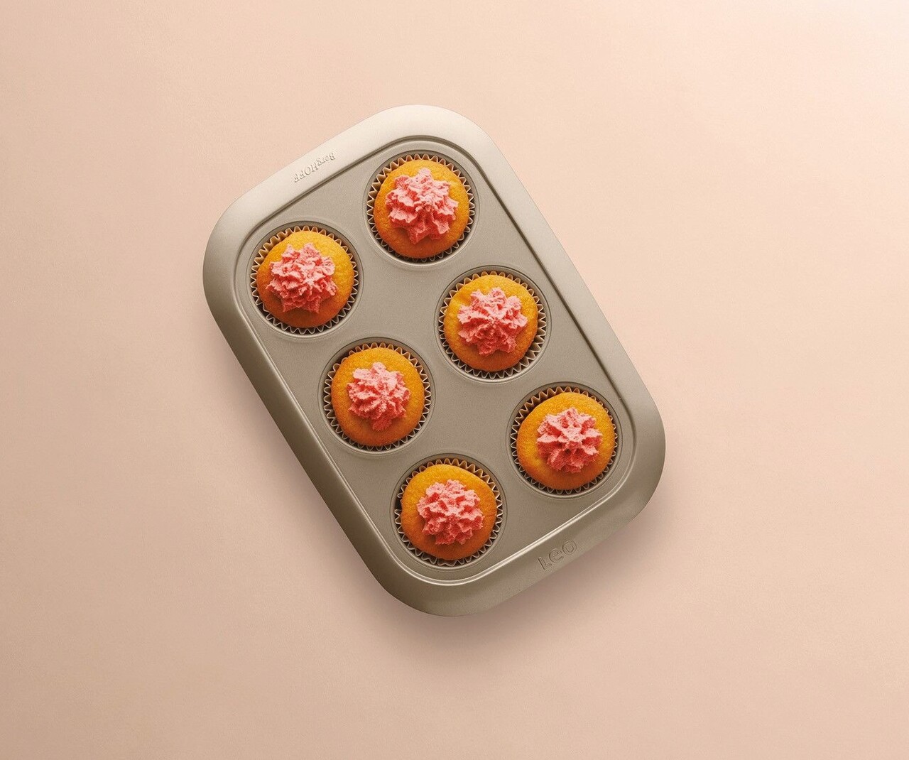 Tava de copt pentru 6 briose BergHOFF, Leo Balance, 29 x 20 x 3 cm, Ø6.5 cm, otel carbon, invelis antiaderent, bej