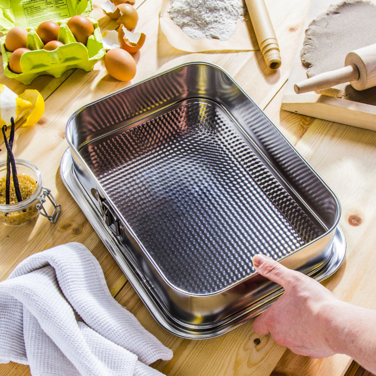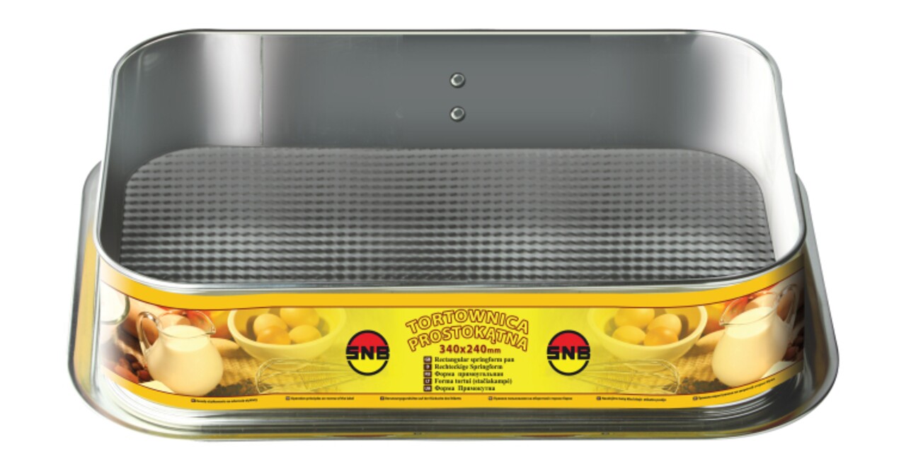 Tava pentru tort, cu dimensiuni de 34x24cm. Usor de utilizat dar si de curatat, aceasta este ideala pentru a pregati desertul preferat. Gama SNB pune la dispozitie o varietate de forme de prajituri, torturi, tarte si nu numai, ca de asemenea tavi practice pentru a gati deserturi delicioase pentru intreaga familie. Alegeti vase practice de inalta calitate, dintr-o gama larga de modele si dimensiuni.