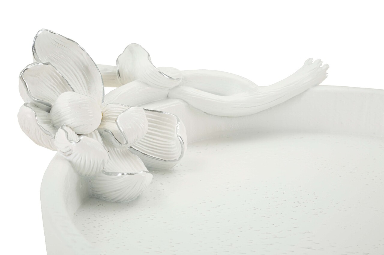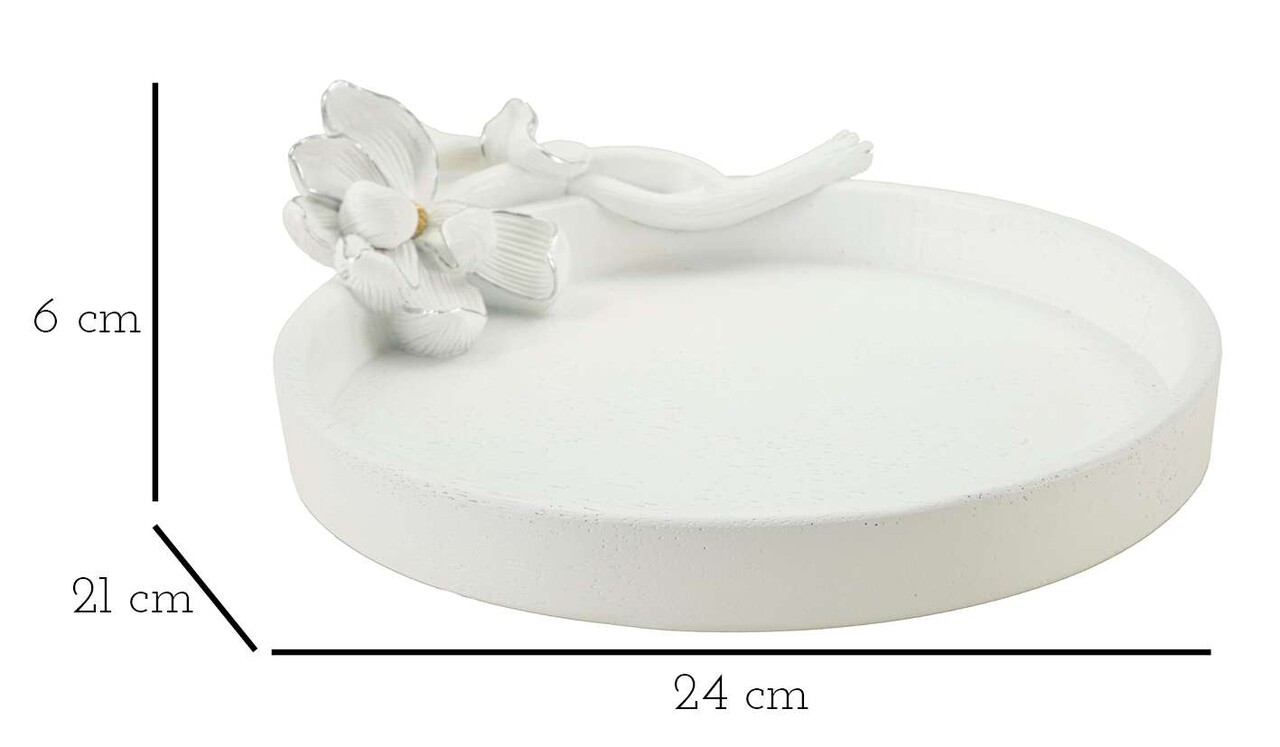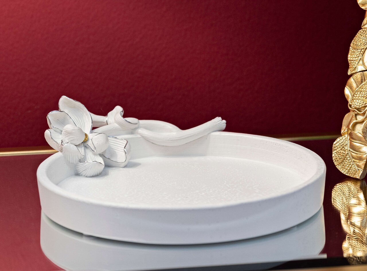 Tava decorativa Magnolia, Mauro Ferretti, 24x21x6 cm, polirasina, alb