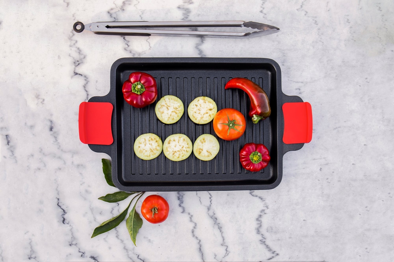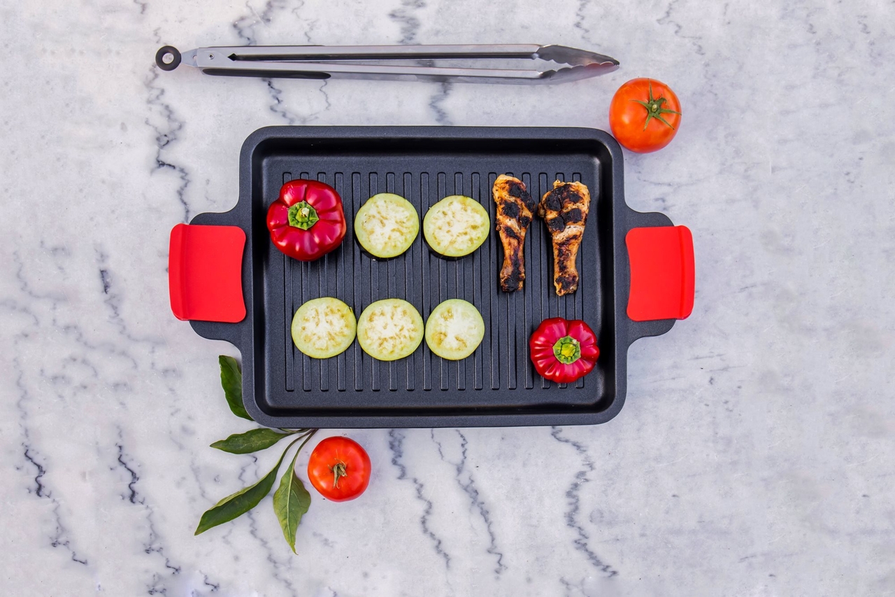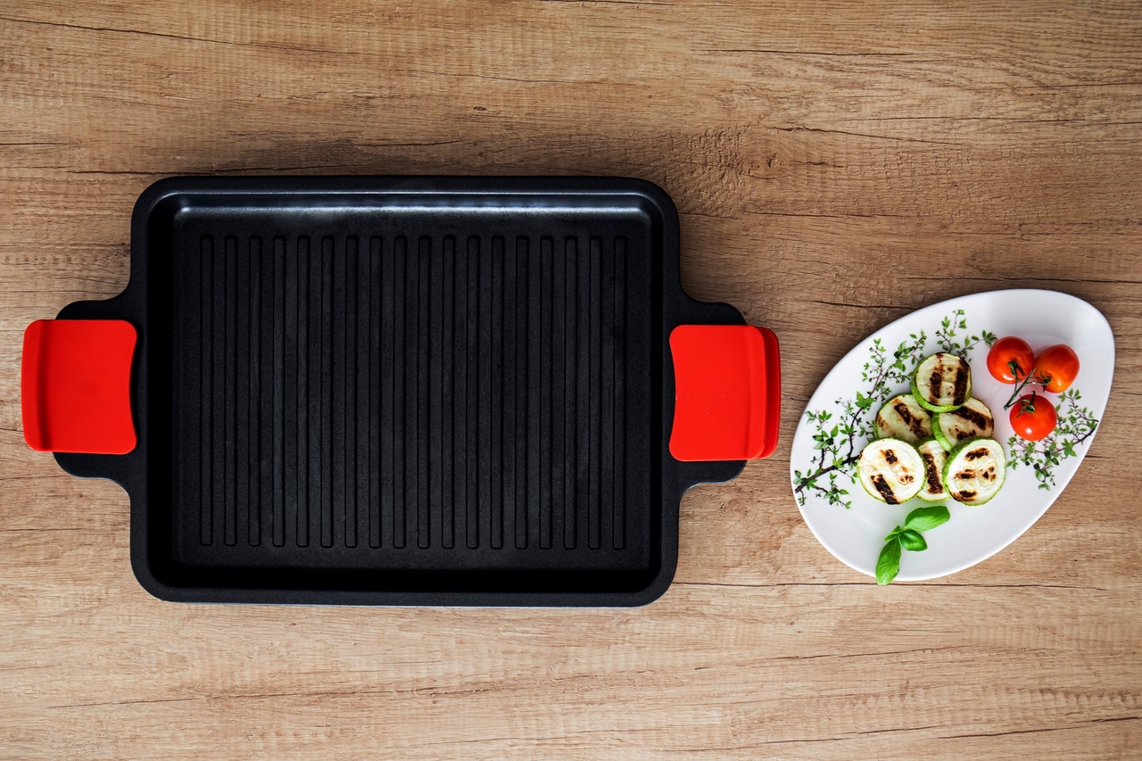 Tava grill poate fi utilizata pe plitele cu gaz, Electrice, Ceramice si cele cu inductie.