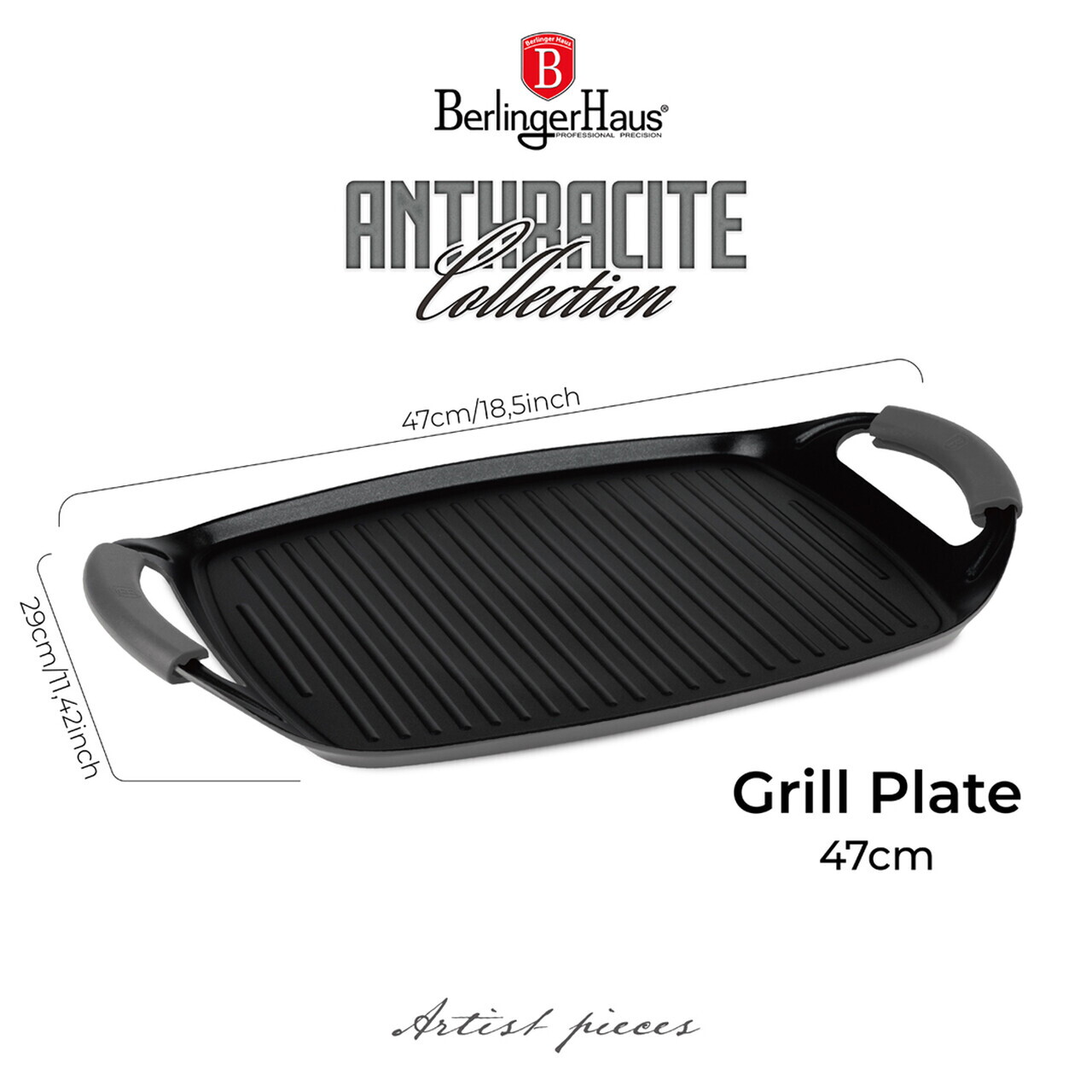 Tava grill Berlinger Haus, Anthracite, 47x29 cm, aluminiu forjat, antracit mat