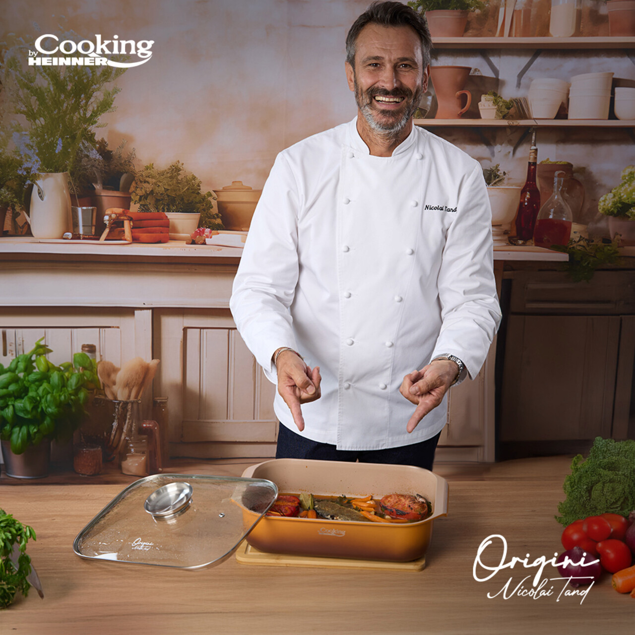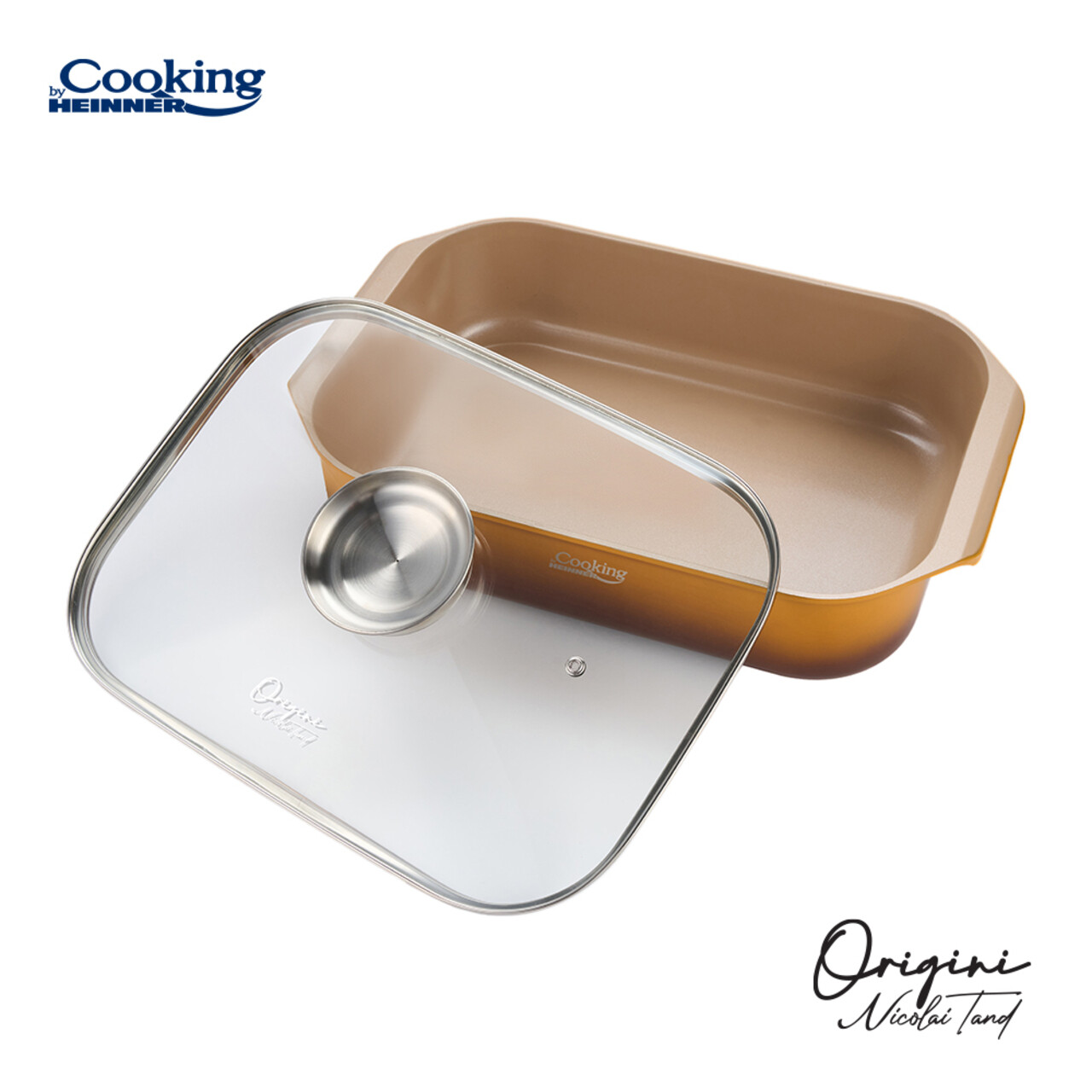 Tava inalta 6 L, ORIGINI by Chef Nicolai Tand, Cooking by Heinner, 39x26x8.5 cm, aluminiu/ceramica, portocaliu degrade/gri