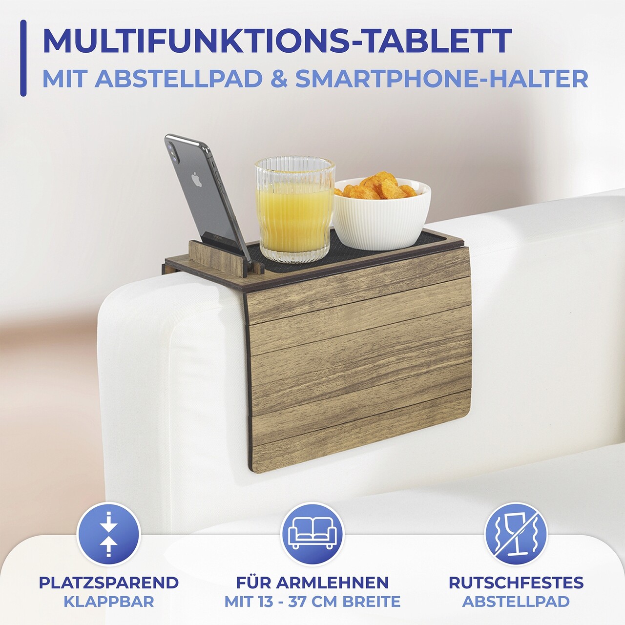 Tava multifunctionala pentru canapea, cu suport pentru smartphone si tableta Maximex, Sofa, 49x28x0.8 cm, MDF, maro/negru