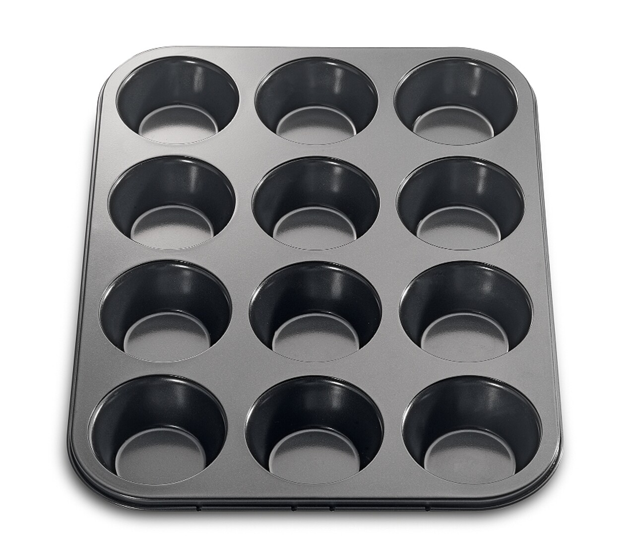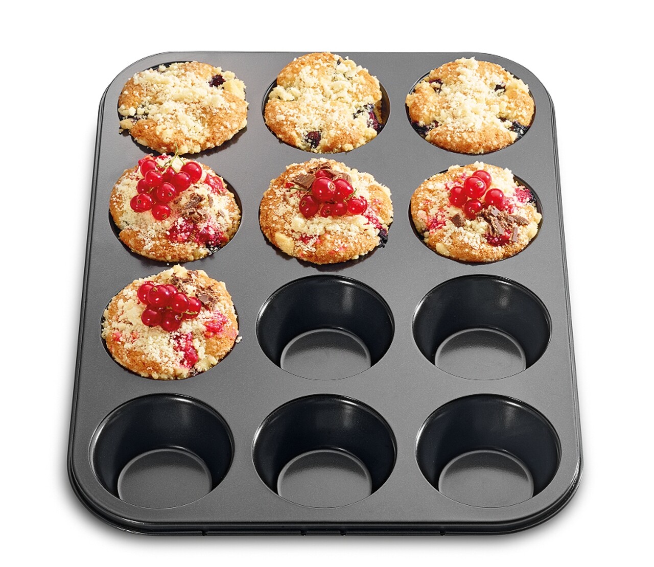 Tava pentru copt briose, Kuchenprofi, 27 x 35 cm, otel carbon, gri antracit