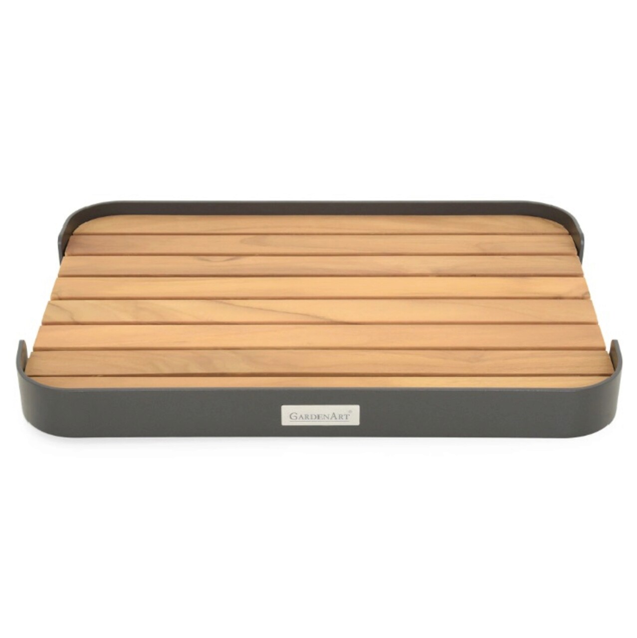 Tava pentru servire in exterior Bloom, 48x32.5x5 cm, aluminiu/lemn, antracit/gri