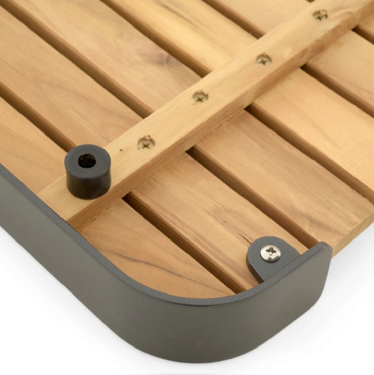 Realizata din structura de aluminiu vopsita in camp electrostatic si lamele din lemn de teak.