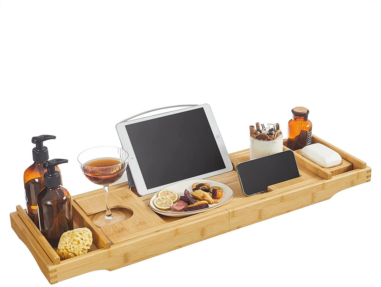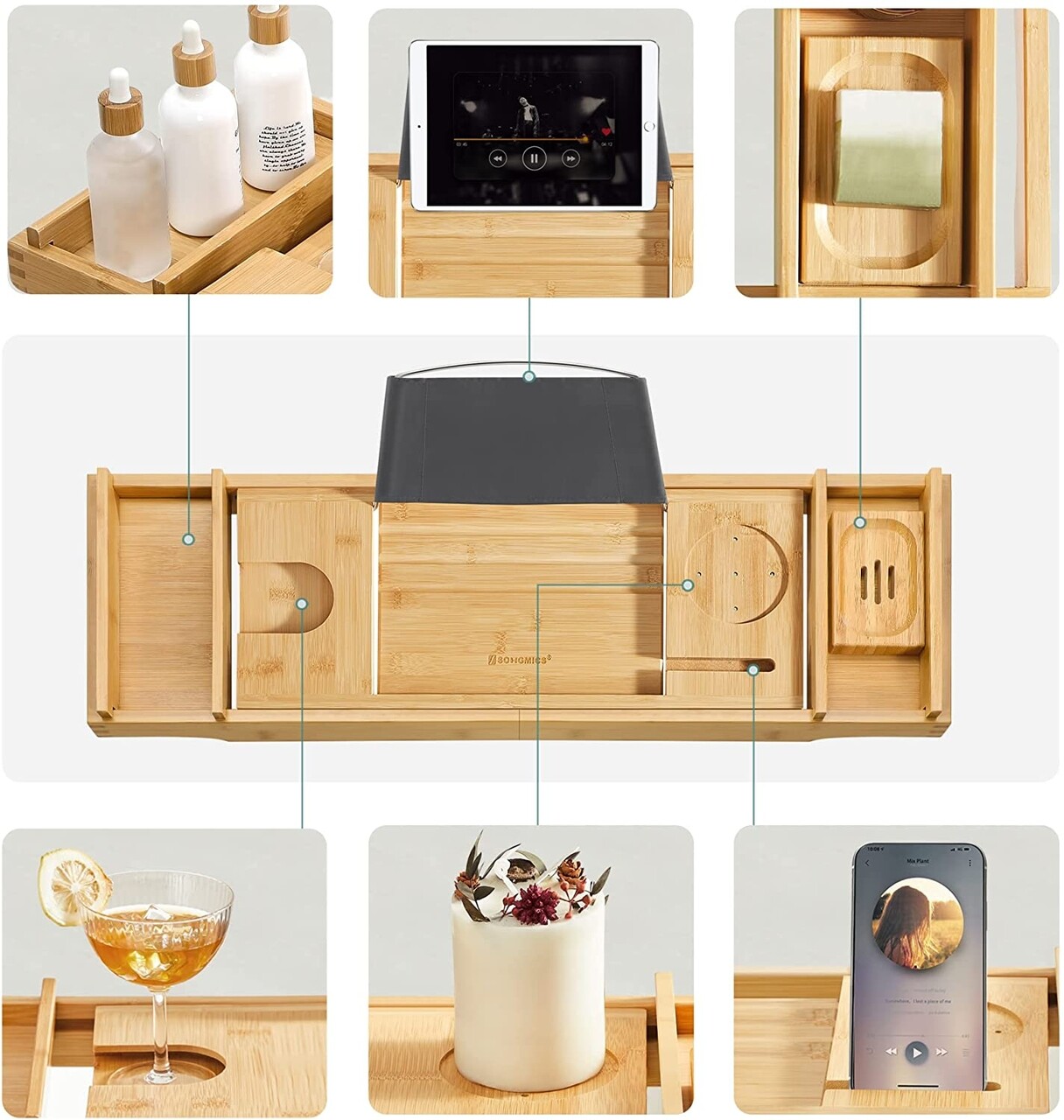 Tava reglabila pentru cada Luxury Caddy, Songmics, 75-109 cm, bambus