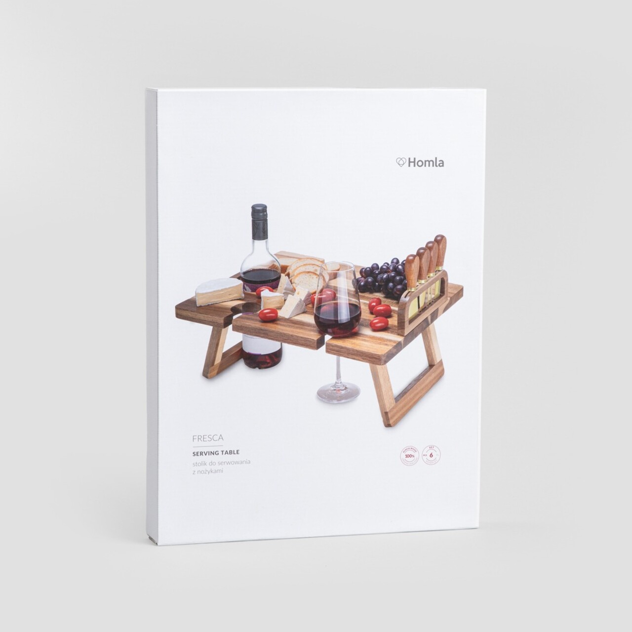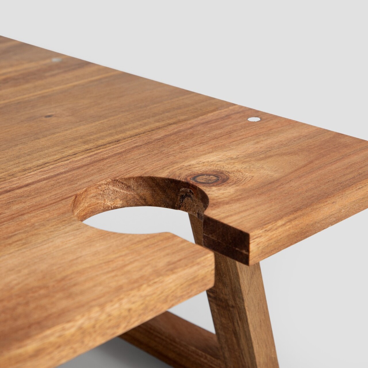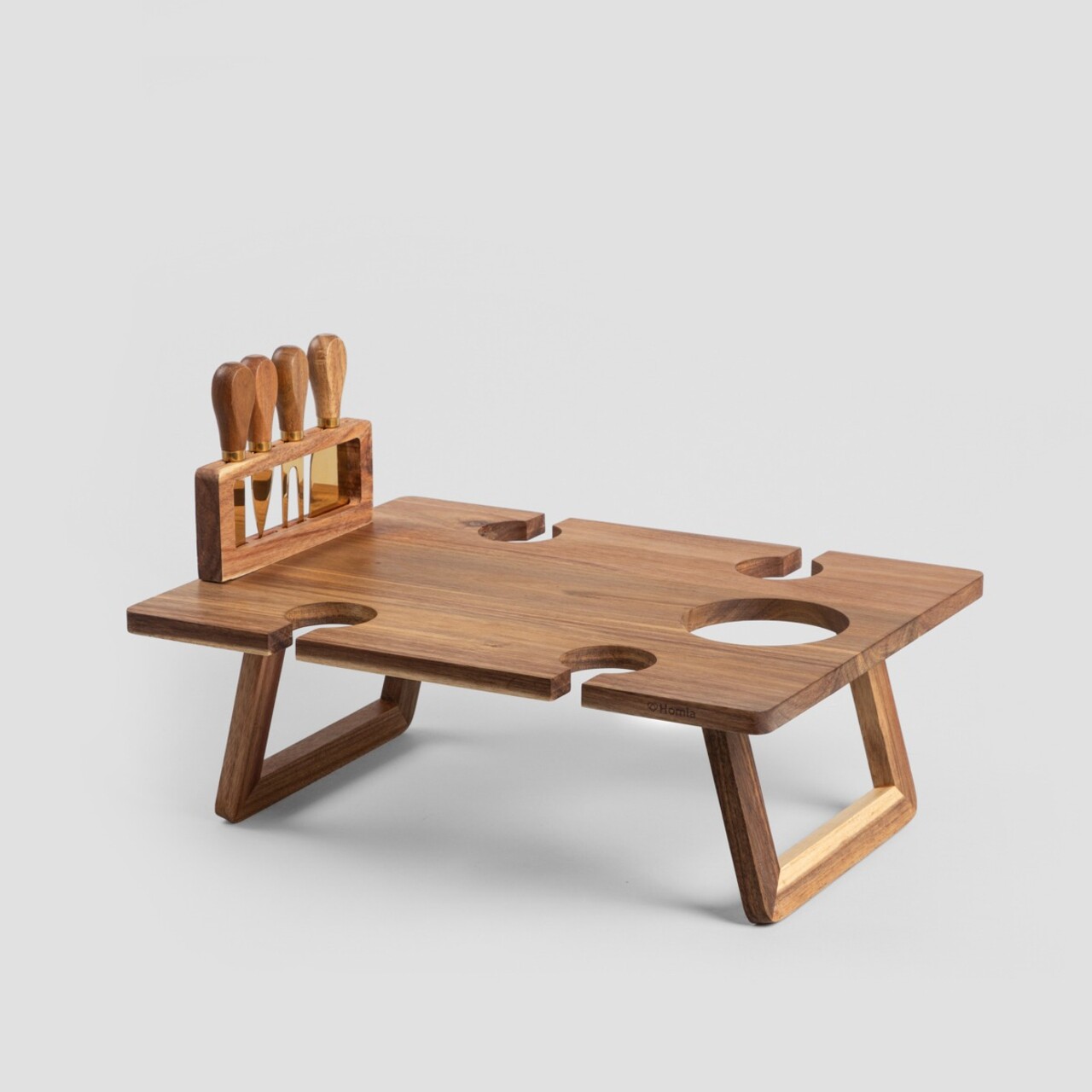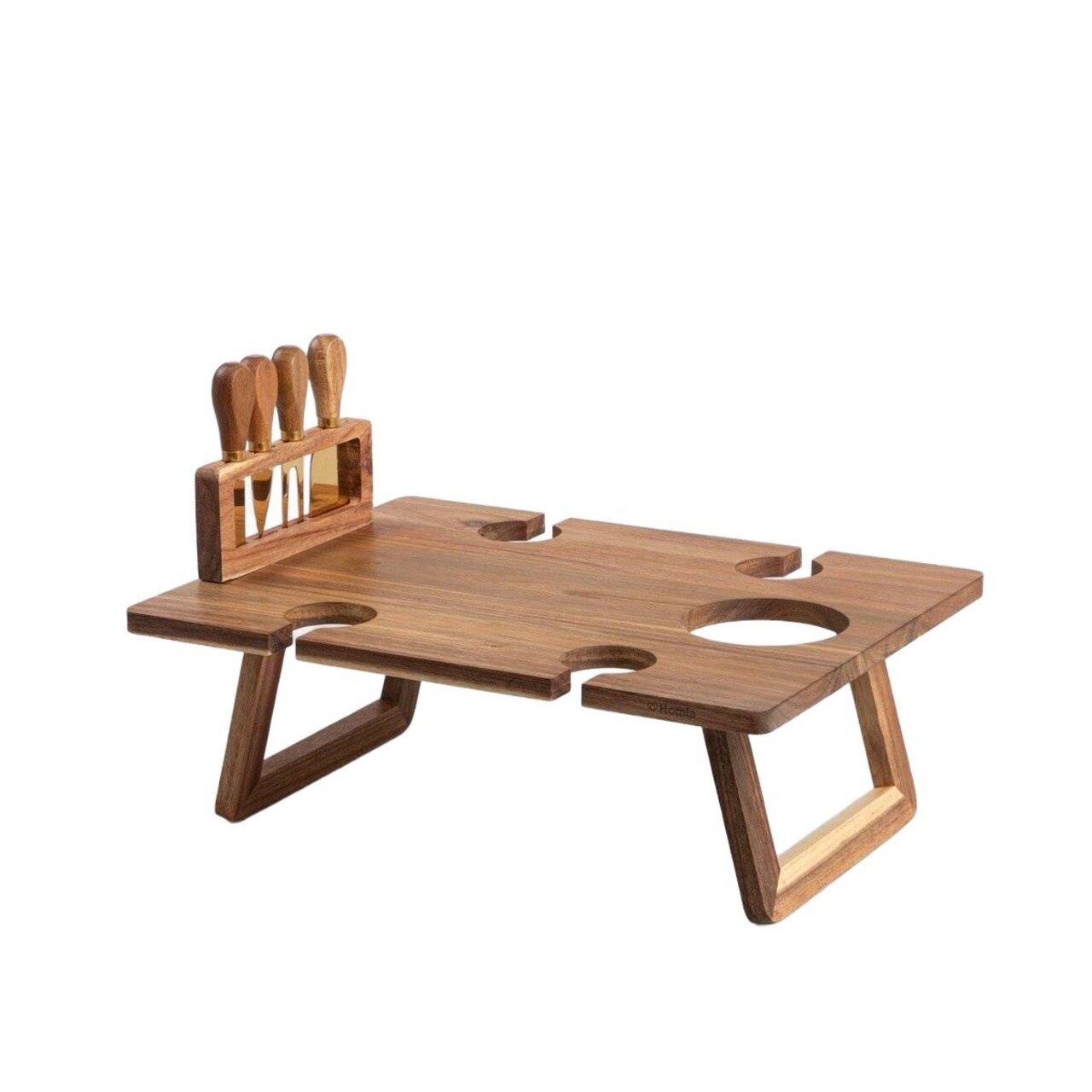 Aceasta tava din lemn este perfecta pentru o seara cu prietenii, picnic, o cina romantica sau o intalnire de familie. Forma sa functionala permite servirea convenabila a gustarilor si plasarea in siguranta a paharelor.