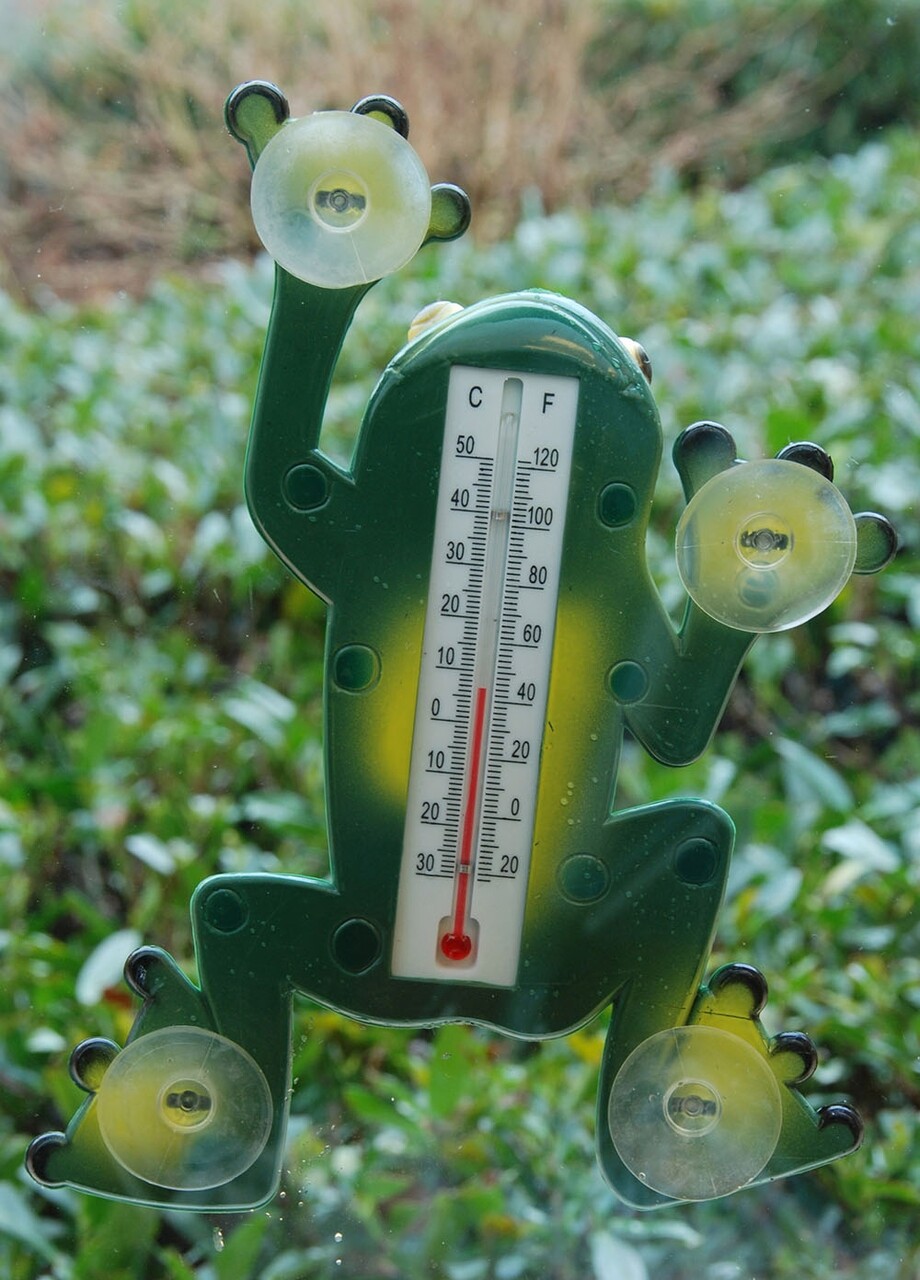 Termometru pentru exterior, Esschert, Frog, 3.5 x 17.6 x 23.8 cm, ABS/PVC/sticla, verde