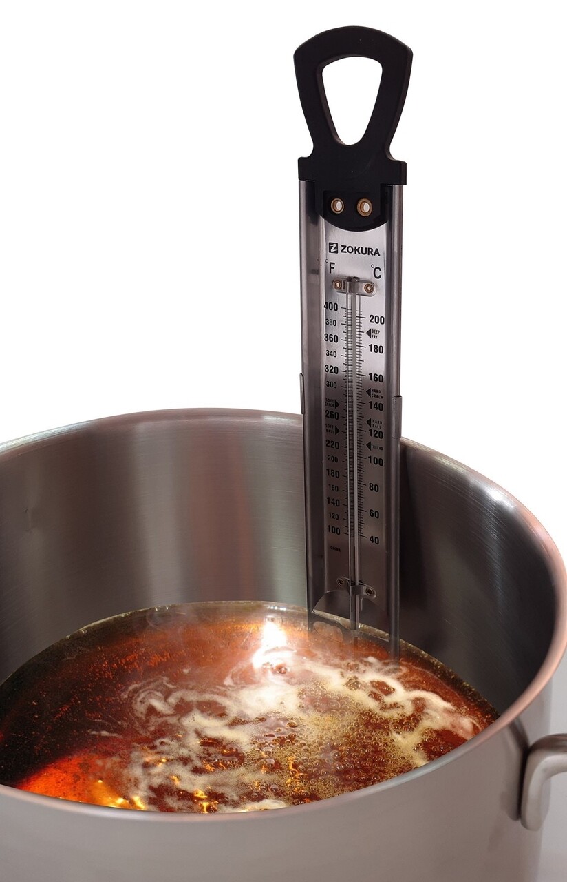 Termometru pentru lichide marca Zokura, este potrivit pentru masurarea temperaturii preparatelor in timpul gatirii.
