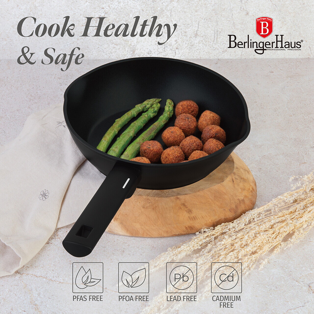 Tigaie adanca Berlinger Haus, Matte Black, 24 cm, 2.3 L, aluminiu forjat, negru