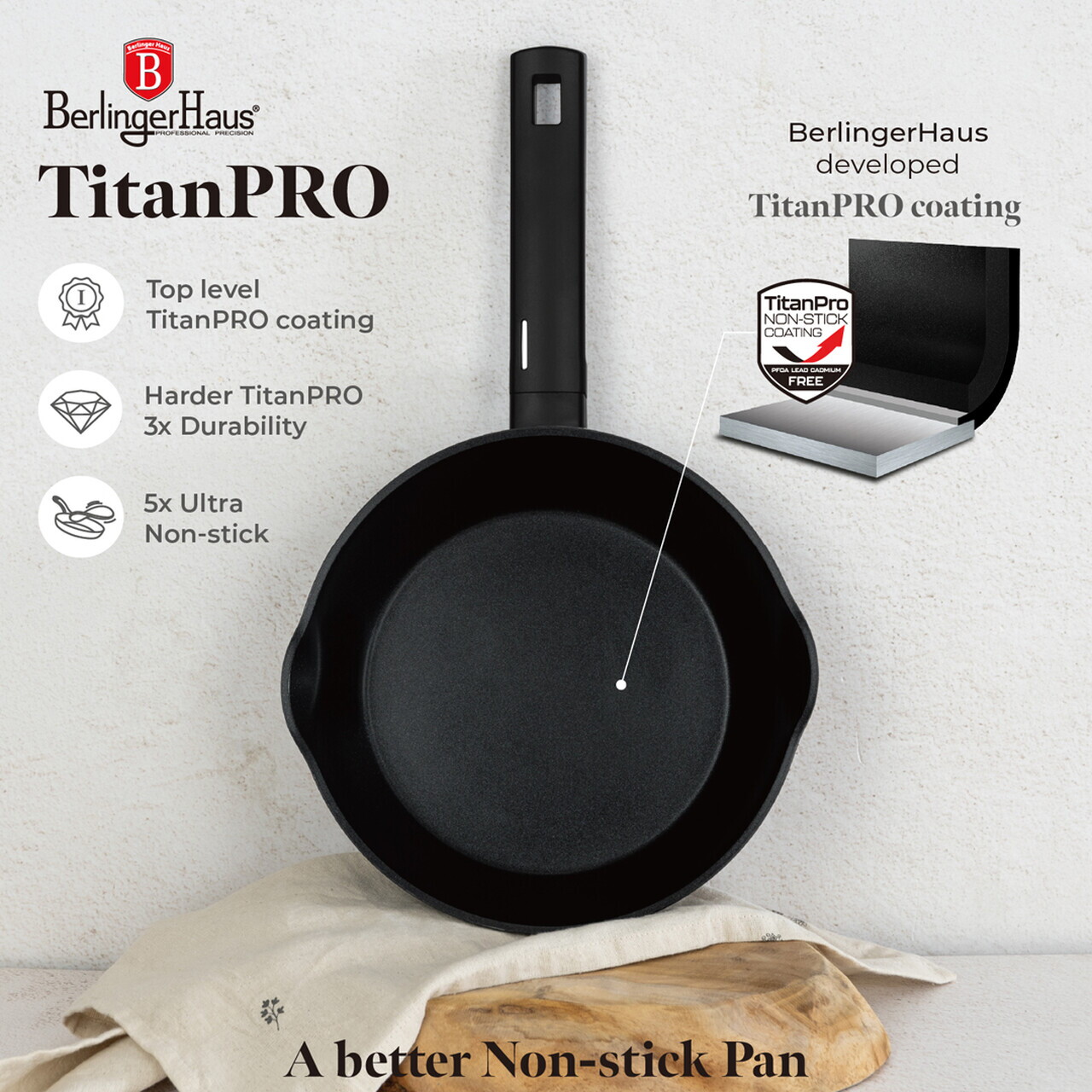 Material: aluminiu forjat cu strat antiaderent TitanPro