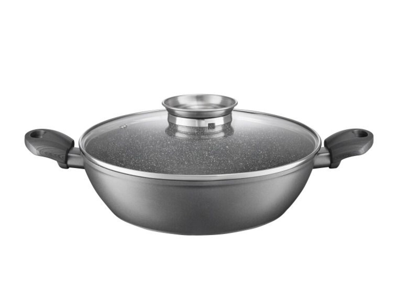 Tigaie adanca cu capac aroma knob Loft, Ambition, 28 cm, aluminiu, invelis Qualum Basic