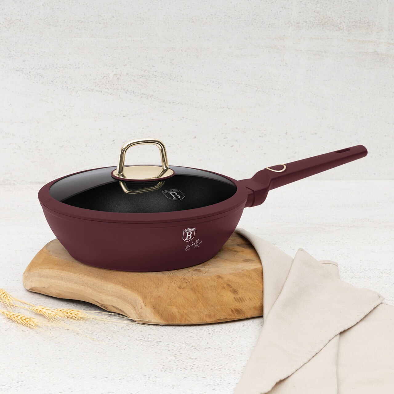 Tigaie adanca cu capac Berlinger Haus, Leonardo, 24 cm, 2.3 L, aluminiu forjat, visiniu mat
