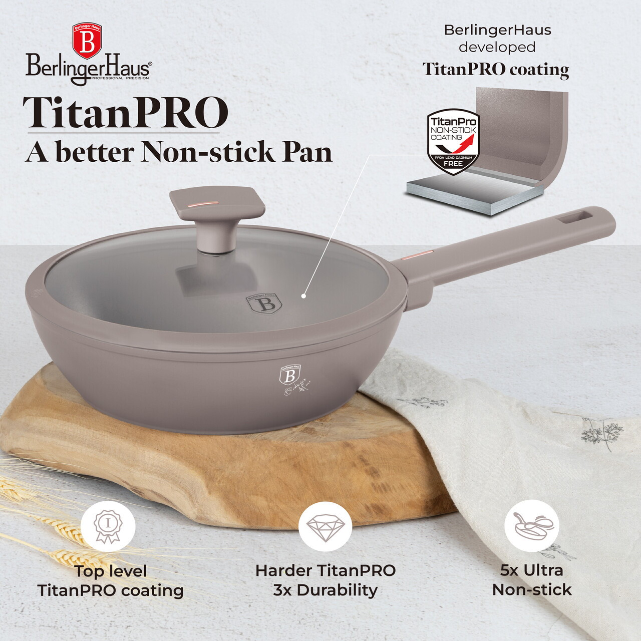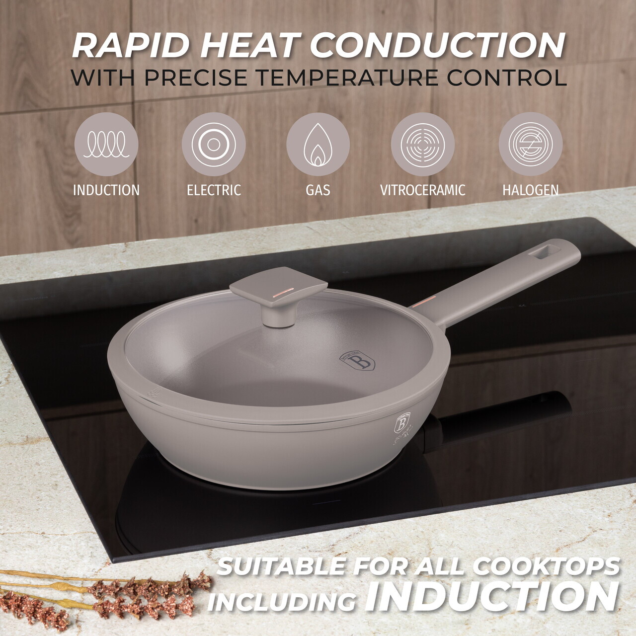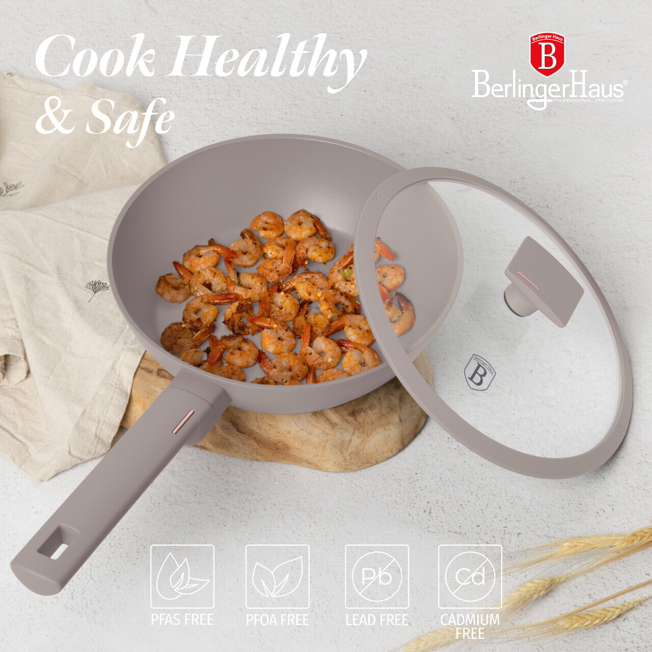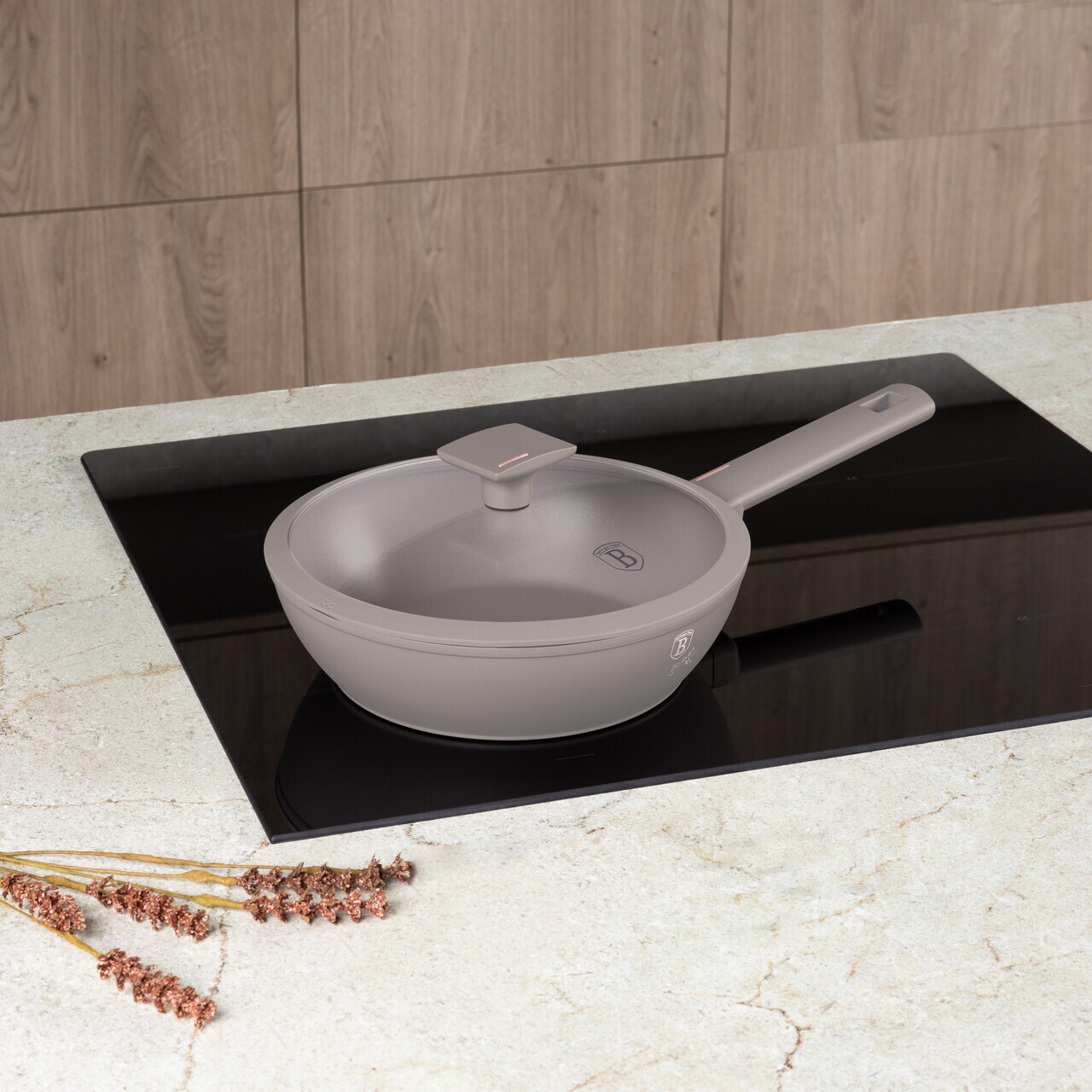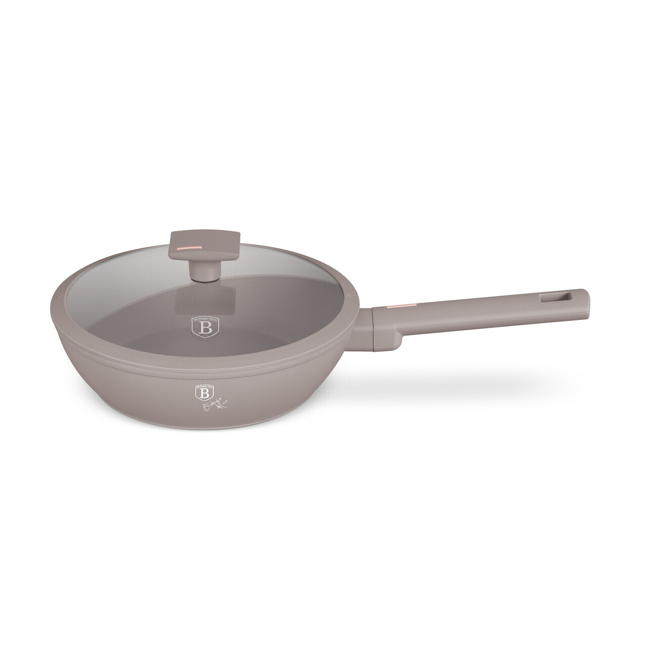 Tigaie adanca cu capac Berlinger Haus, Taupe, 24 cm, 2.3 L, aluminiu forjat, taupe mat