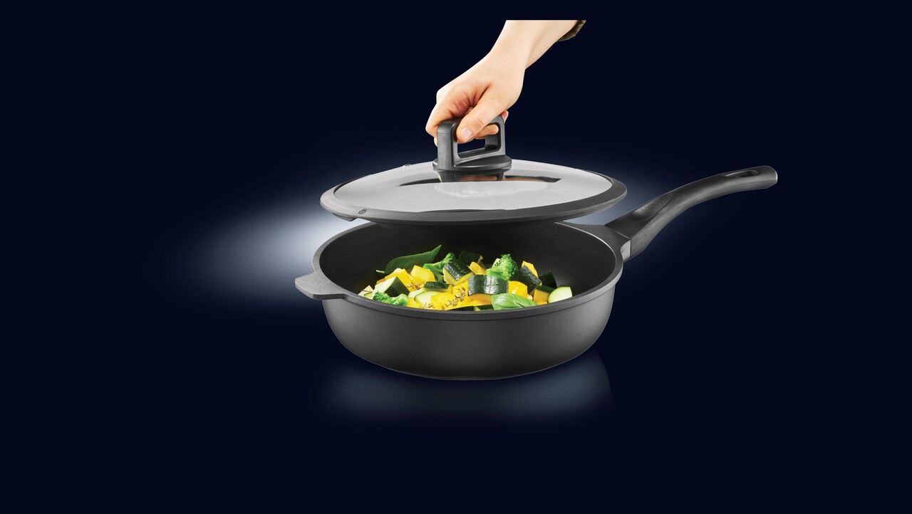 Linia ENZO este formata din produse inovatoare, multifunctionale si elegante. Folosesc solutii de inalta tehnologie concepute pentru a usura utilizarea de zi cu zi. Oalele si tigaile ENZO sunt fabricate din aluminiu turnat, ceea ce le face foarte durabile si rezistente la deformare si deteriorare. Aluminiul turnat asigura o distributie egala a caldurii pe intreaga suprafata a vaselor de gatit, indiferent de concentratia sursei de energie. Peretii grosi acumuleaza perfect caldura, vasul ramane cald mai mult timp iar gatitul in sine este mai economic. Interiorul vaselor de gatit a fost acoperit cu stratul antiaderent elvetian ILAG Ultimate de inalta calitate. Acesta este un strat extrem de durabil, cu proprietati antiaderente excelente si cea mai mare rezistenta la zgarieturi. Utilizarea stratului ILAG Ultimate garanteaza o gatire/prajire sanatoasa, cu continut scazut de grasimi, fara a se lipi. Vasele de gatit au manere mari si confortabile care ofera o prindere sigura si sunt rezistente la caldura. Husele au o margine din silicon cu orificii pentru o evaporare si strecurare usoara. Oalele si tigaile ENZO au un fund gros cu inductie completa, potrivite pentru utilizarea pe toate tipurile de aragaz. Produsele sunt rezistente la cuptor pana la 180° C si pot fi spalate in masina de spalat vase. Fundul cu inductie completa garanteaza o incalzire de 3 ori mai rapida in comparatie cu fundul cu inductie punctiforma. Utilizarea inductiei complete in produse imbunatateste conductibilitatea termica, ceea ce permite reducerea maxima a timpului de gatire si reducerea semnificativa a consumului de energie. Fundul complet cu inductie va ofera, de asemenea, posibilitatea de a utiliza vasele de gatit pe orice plita sau arzator, indiferent de diametrul acesteia.