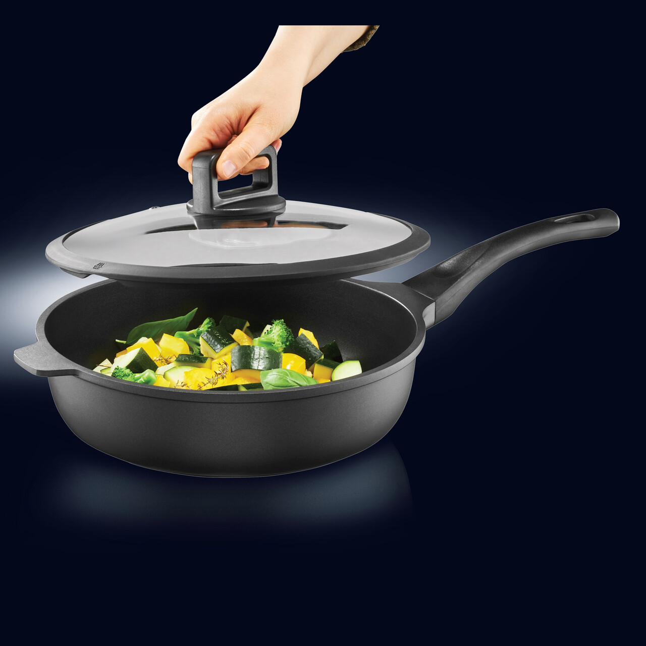 • Tigaie adanca cu capac Enzo, Ambition, 28 cm, 4 L, aluminiu, negru