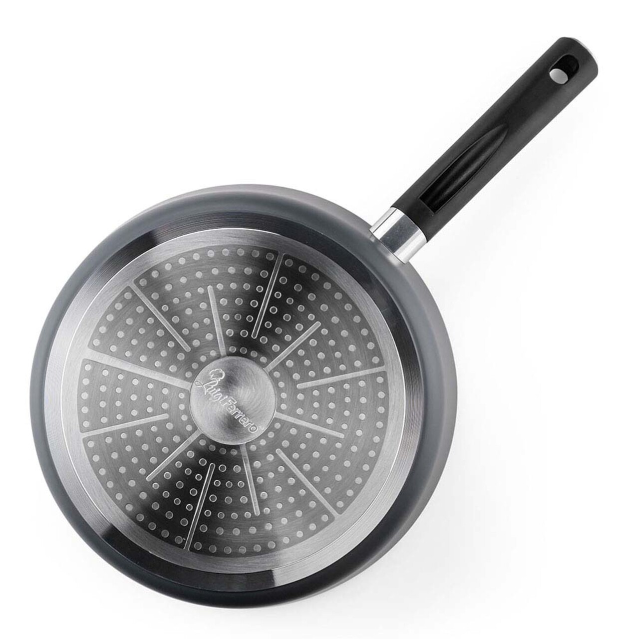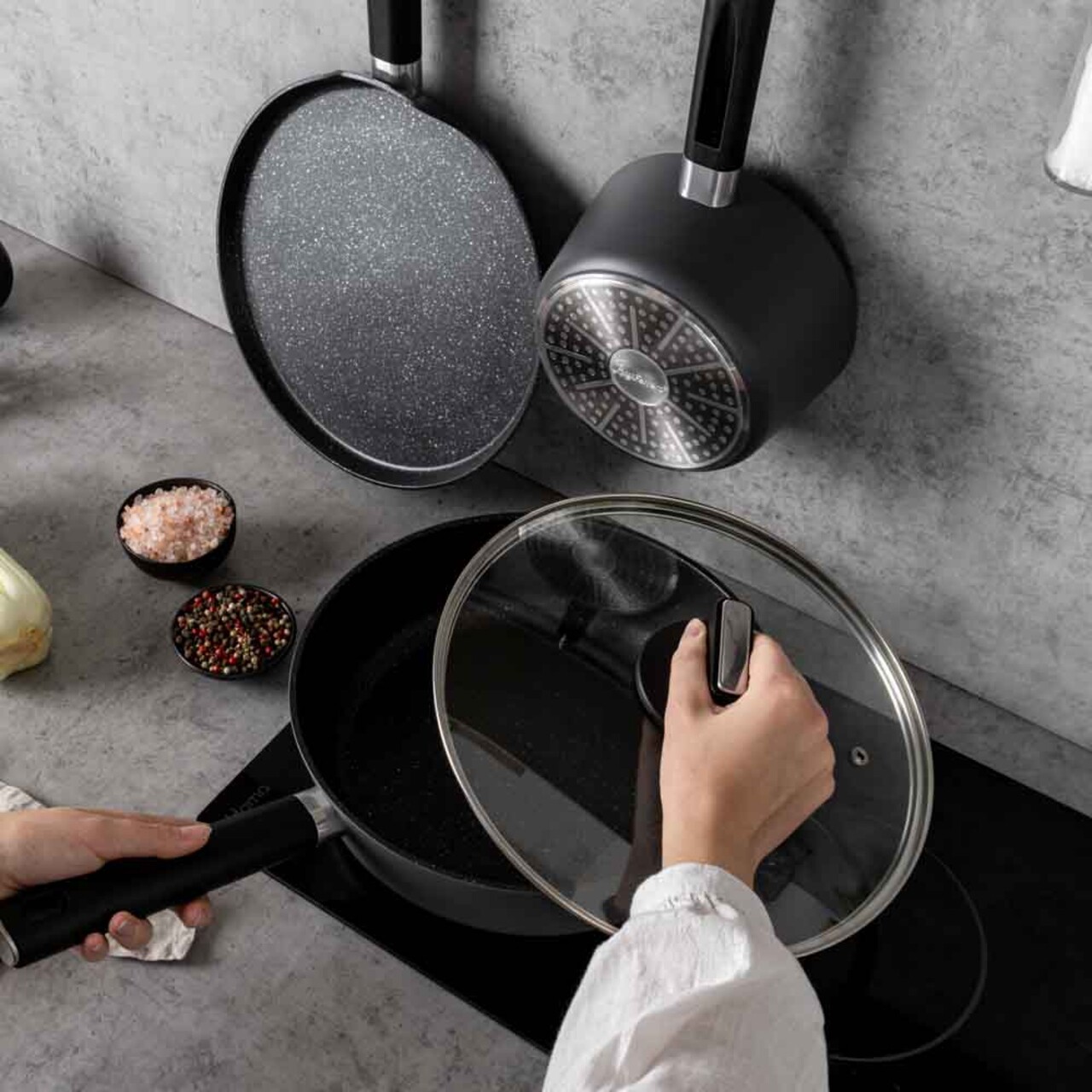 Potrivit pentru toate sursele de incalzire – plite electrice, pe gaz, ceramice, cu halogen si inductie.