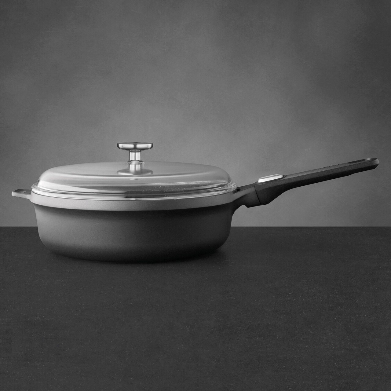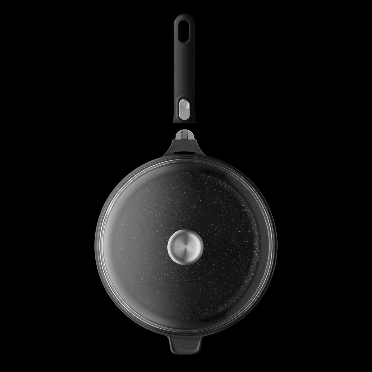 Tigaie adanca cu capac si maner detasabil BergHOFF, Gem Line, Ø28 cm, 4.4 L, aluminiu, negru