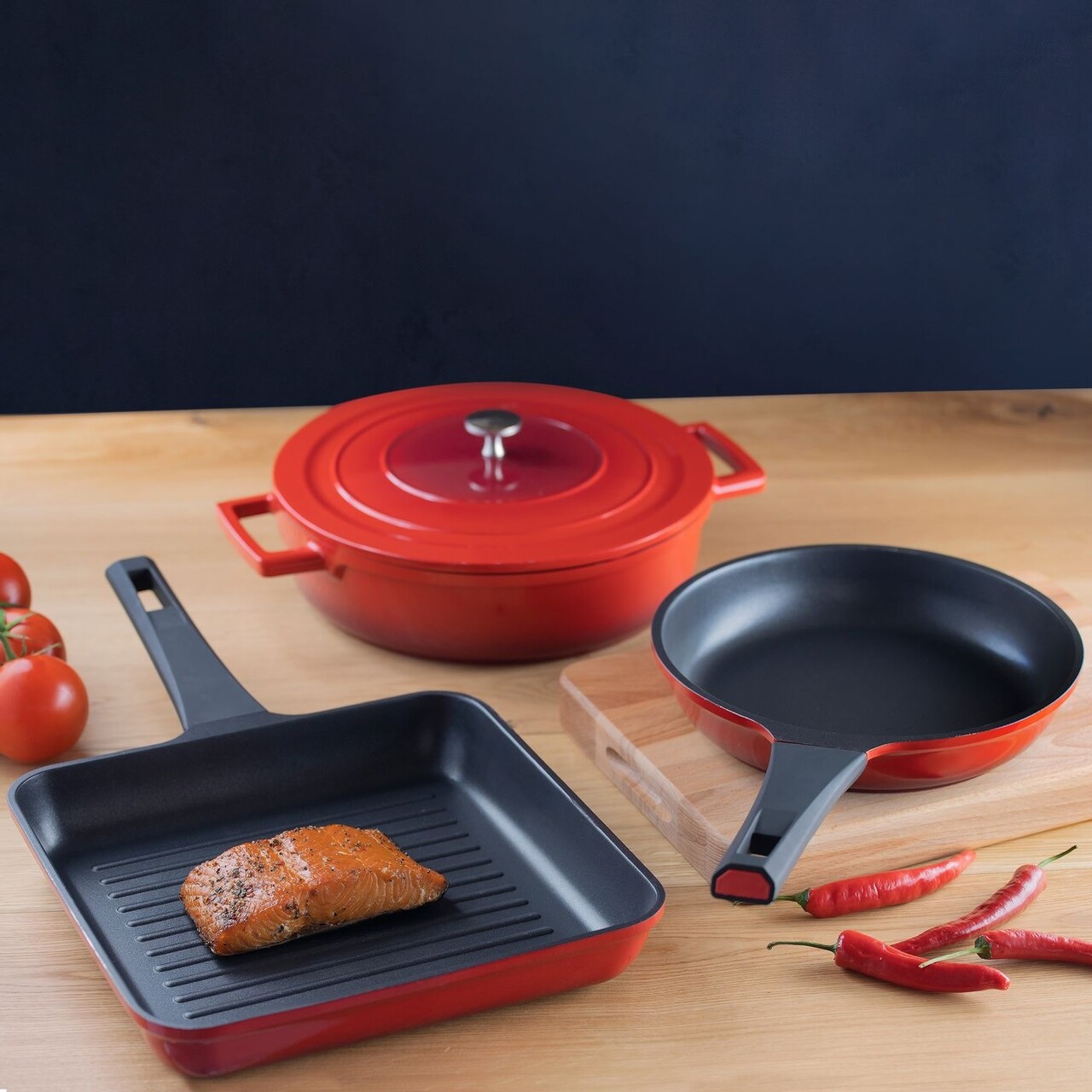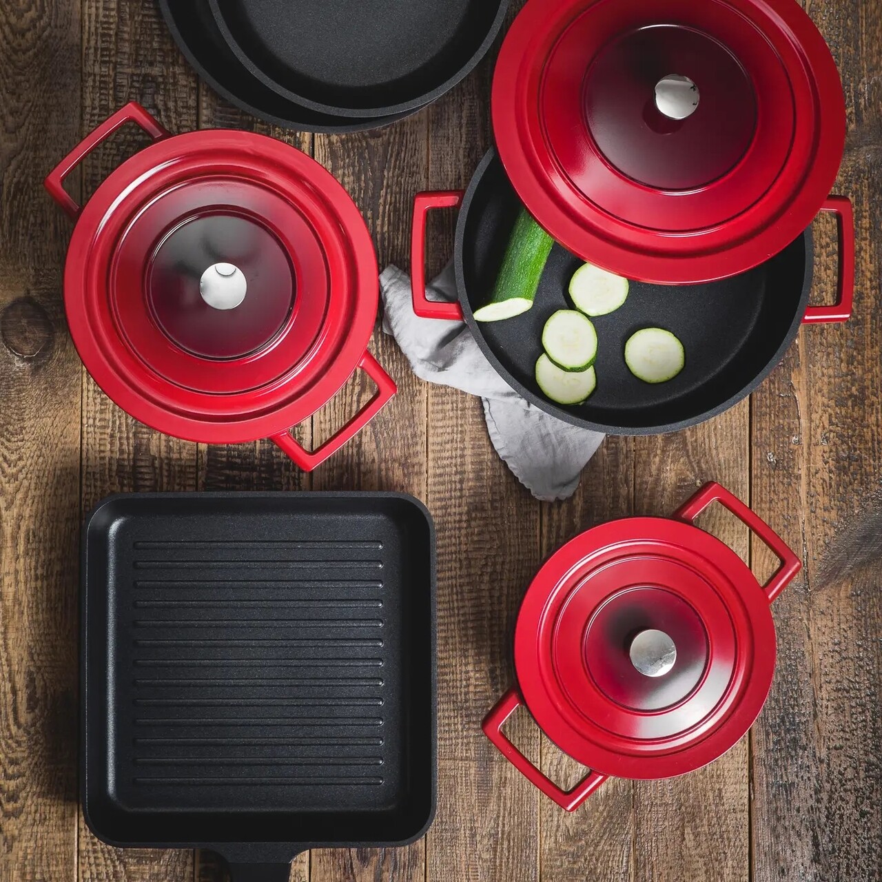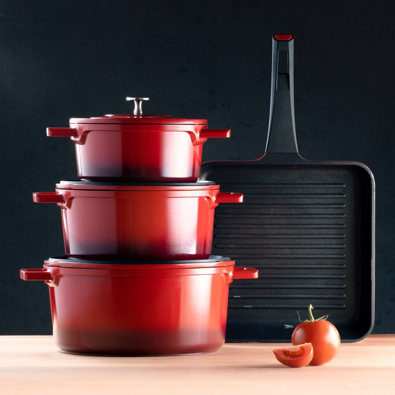 Noua colectie a brandului Ambition este un adevarat rasfat pentru iubitorii de gatit. Toate produsele din linie nu sunt doar functionale, ci mai presus de toate frumoase si foarte stilate. Culoarea rosie si neagra a vaselor cu un efect ombre la moda subliniaza designul lor elegant si adauga un caracter luxos.