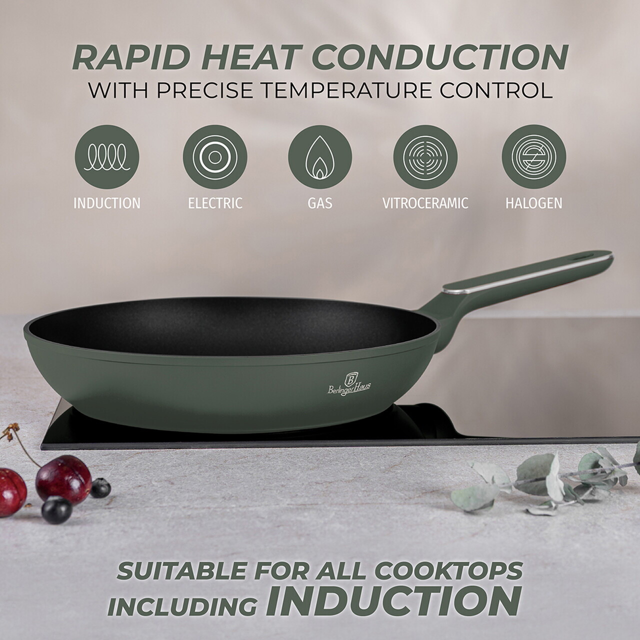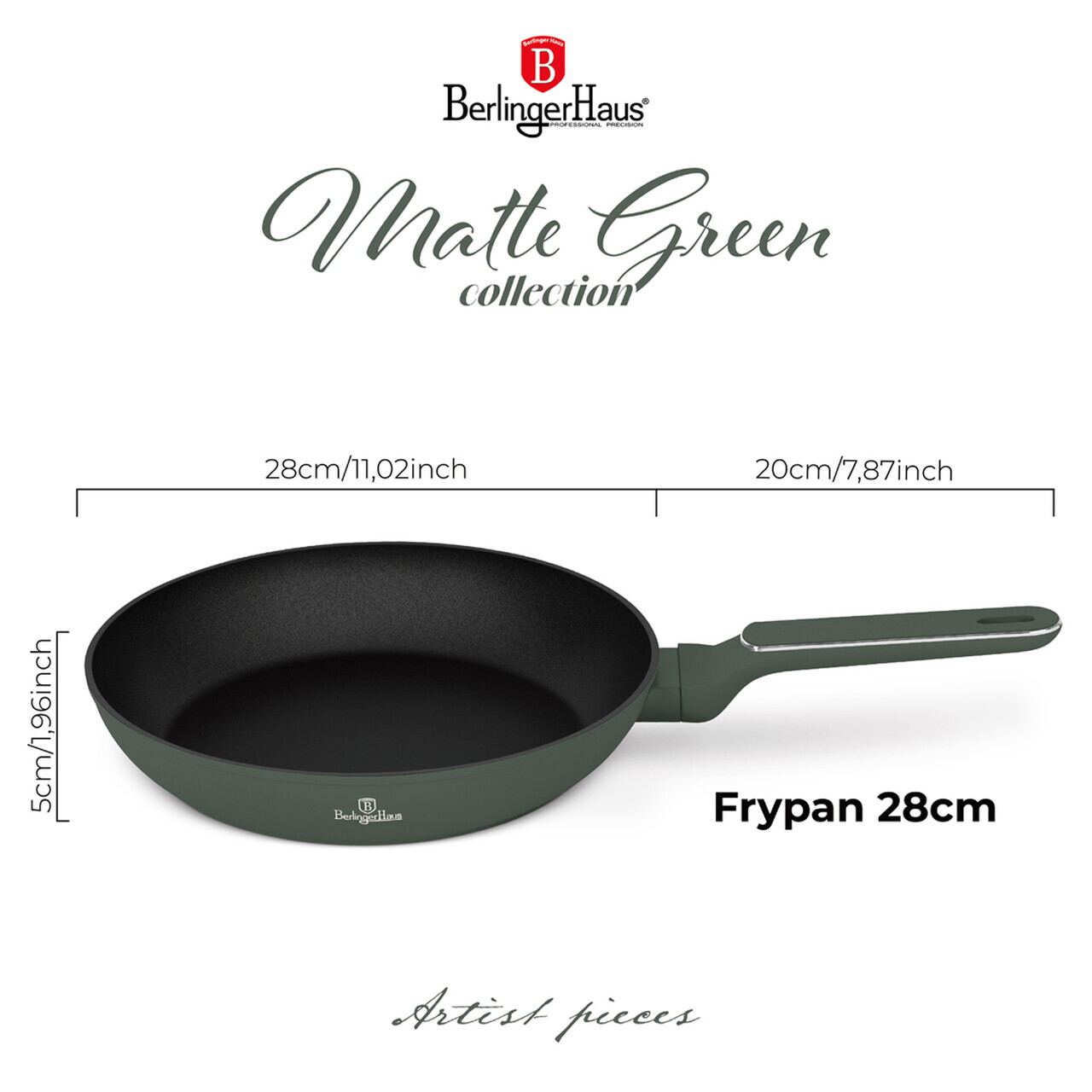 Tigaie Berlinger Haus, Matte Green, 28 cm, 2.4 L, aluminiu forjat, verde mat