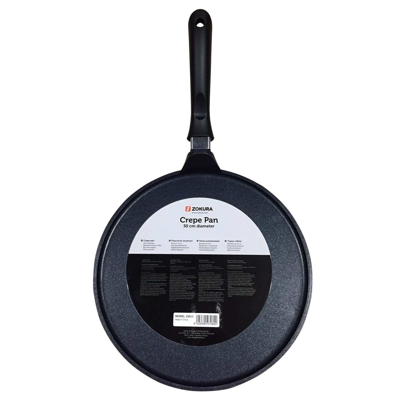 Tigaie pentru clatite, diametru 30 cm, fabricata din aluminiu, cu strat interior antiaderent Withford, marca Zokura.