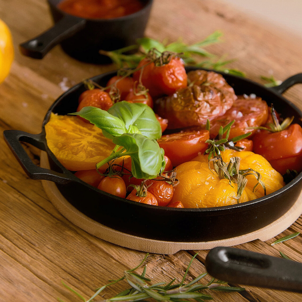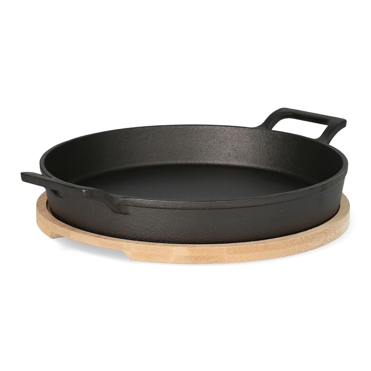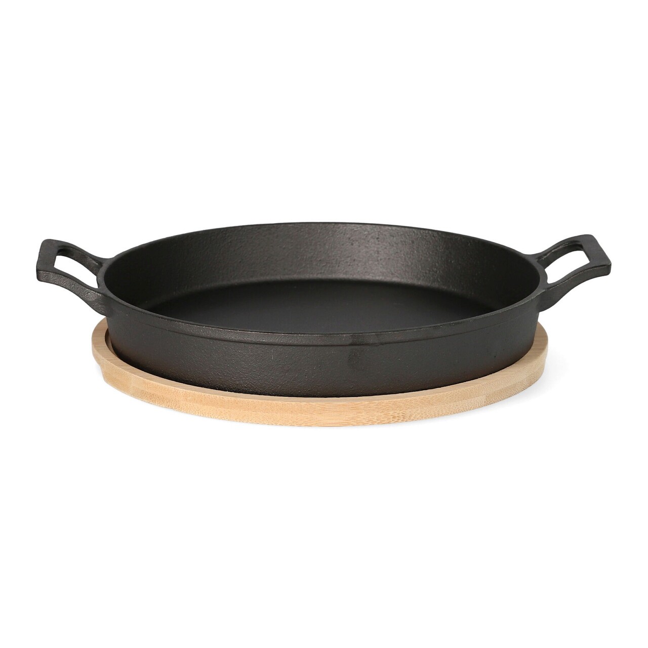 Tigaie cu suport Stone, Homla, 25x20 cm, fonta/bambus, negru/natur