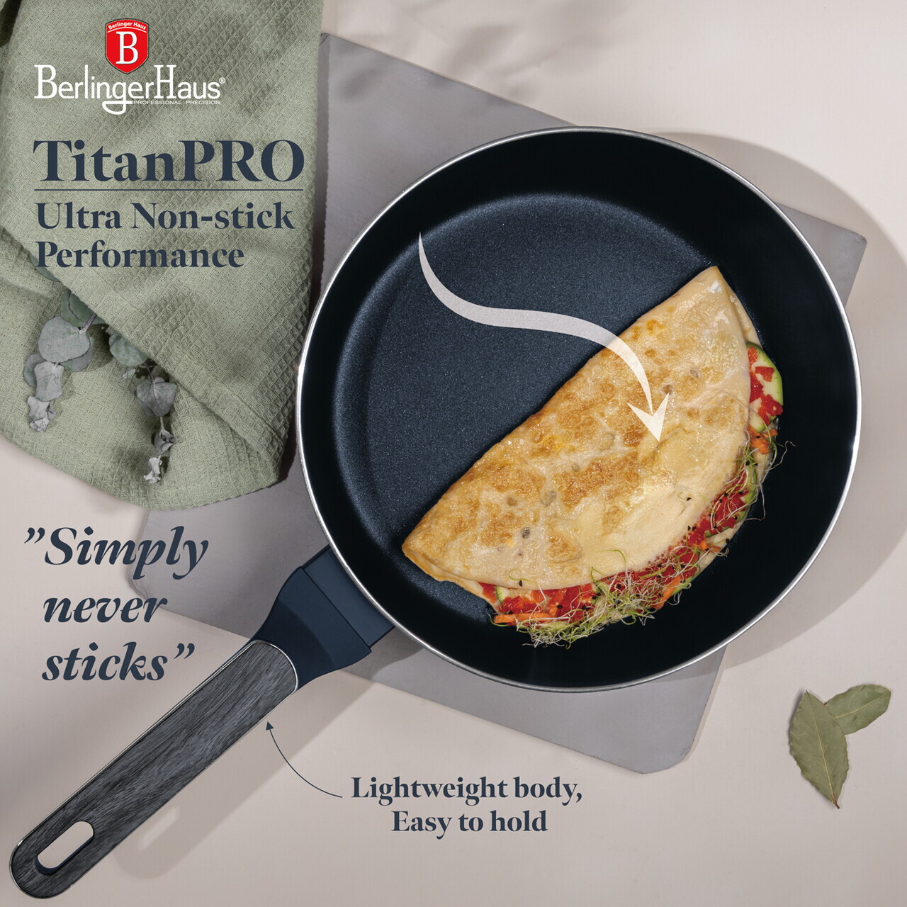 Tigaie flip Berlinger Haus, Deep Sea, 26 cm, aluminiu, albastru mat/gri