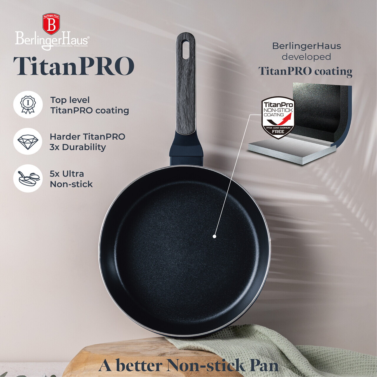 Material: aluminiu stantat cu strat antiaderent TitanPro