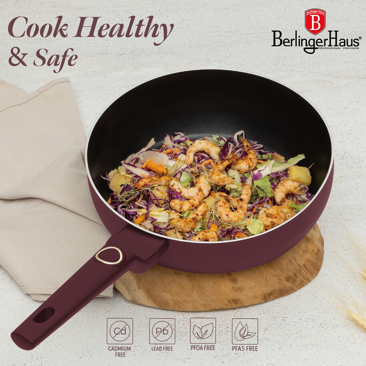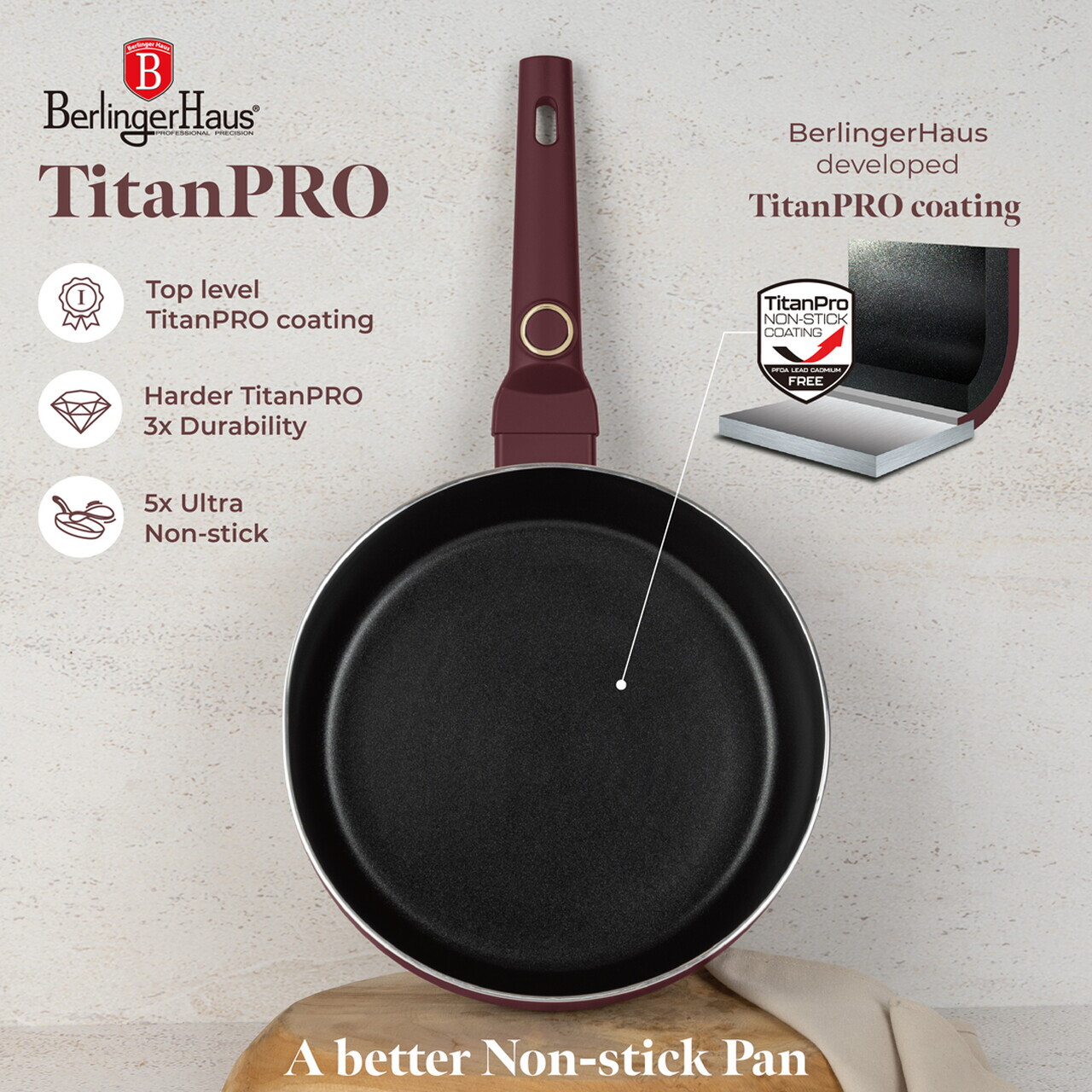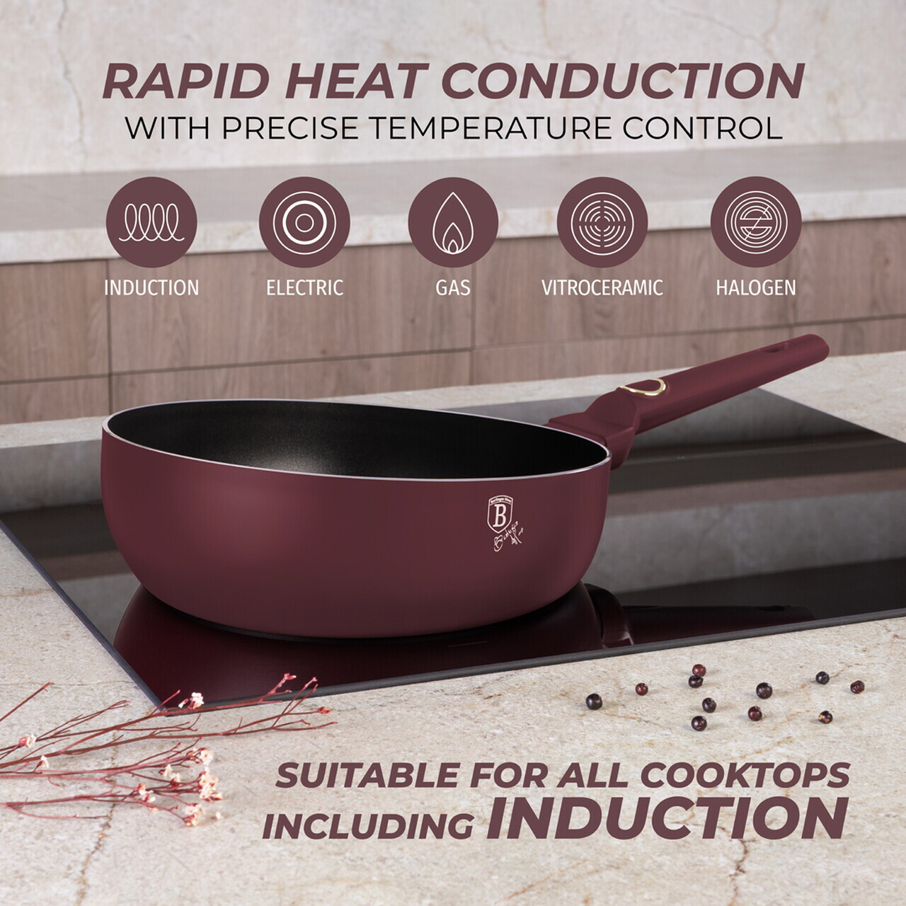 Tigaie flip Berlinger Haus, Leonardo, 26 cm, aluminiu, visiniu mat