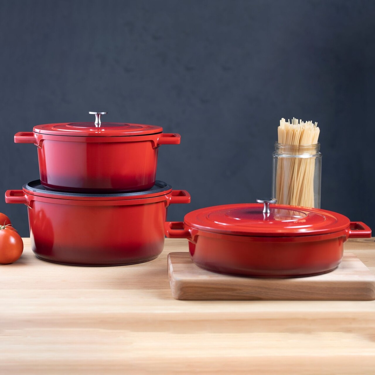 Noua colectie a brandului Ambition este un adevarat rasfat pentru iubitorii de gatit. Toate produsele din linie nu sunt doar functionale, ci mai presus de toate frumoase si foarte stilate. Culoarea rosie si neagra a vaselor cu un efect ombre la moda subliniaza designul lor elegant si adauga un caracter luxos.