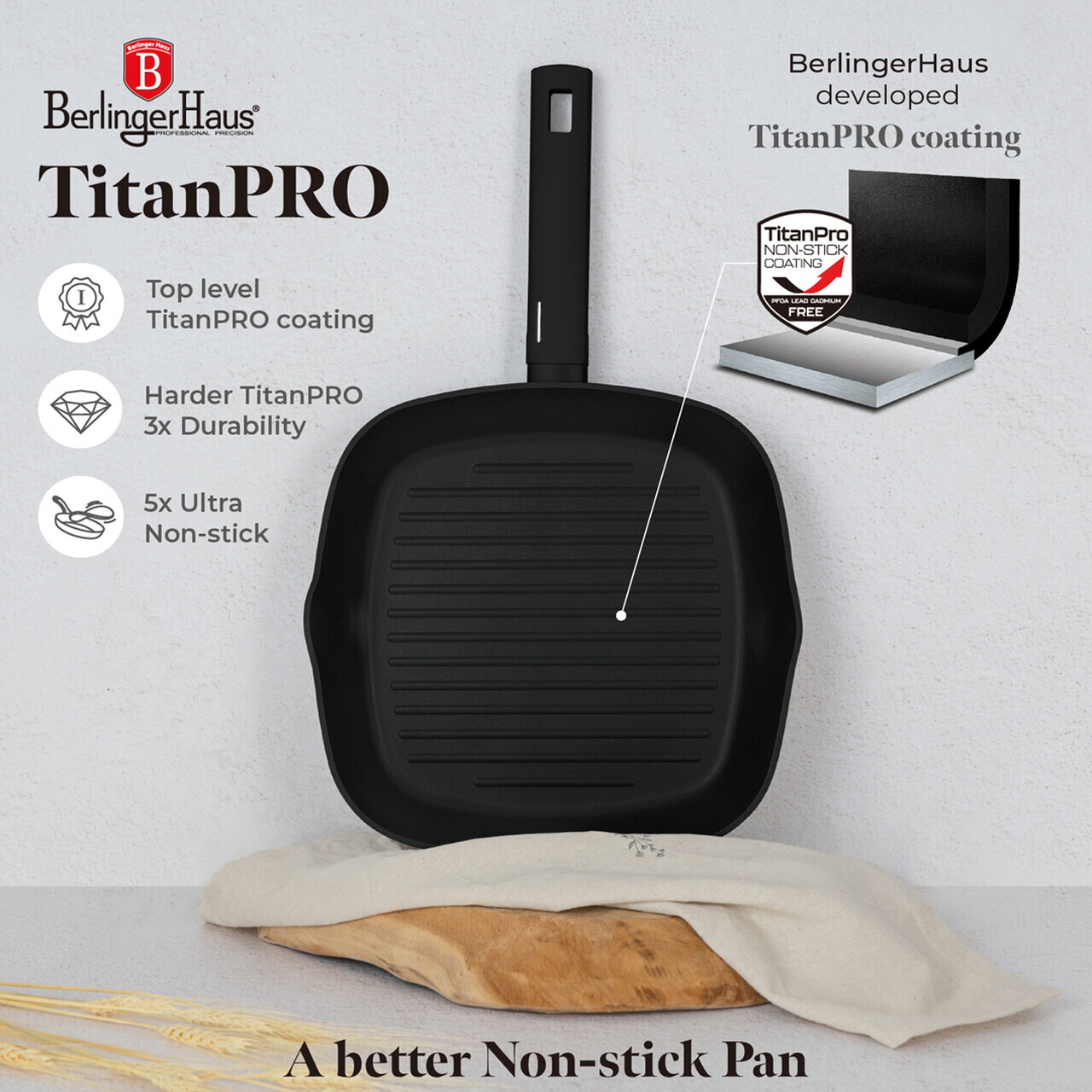 Tigaie grill Berlinger Haus, Matte Black, 28 cm, 2.1 L, aluminiu forjat, negru