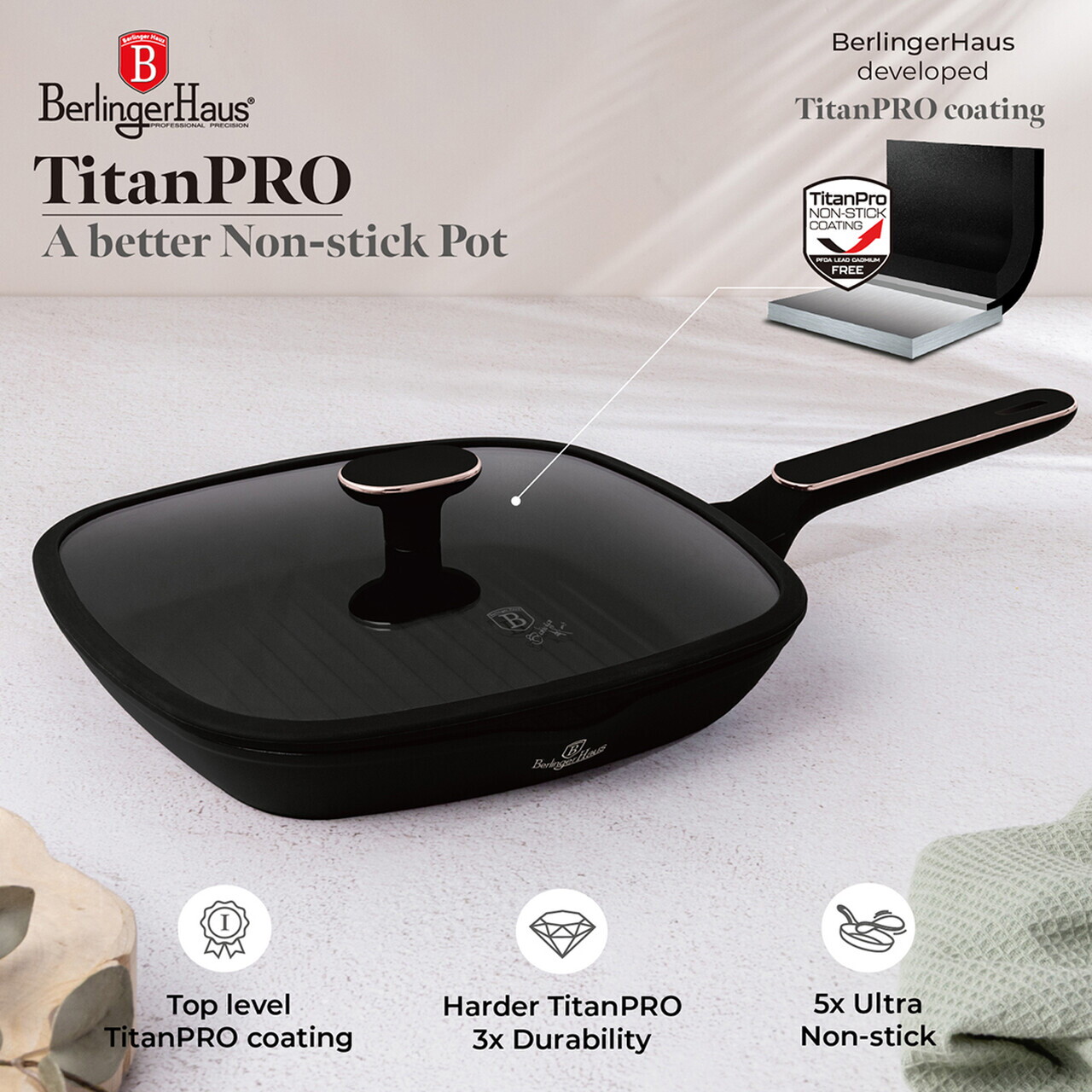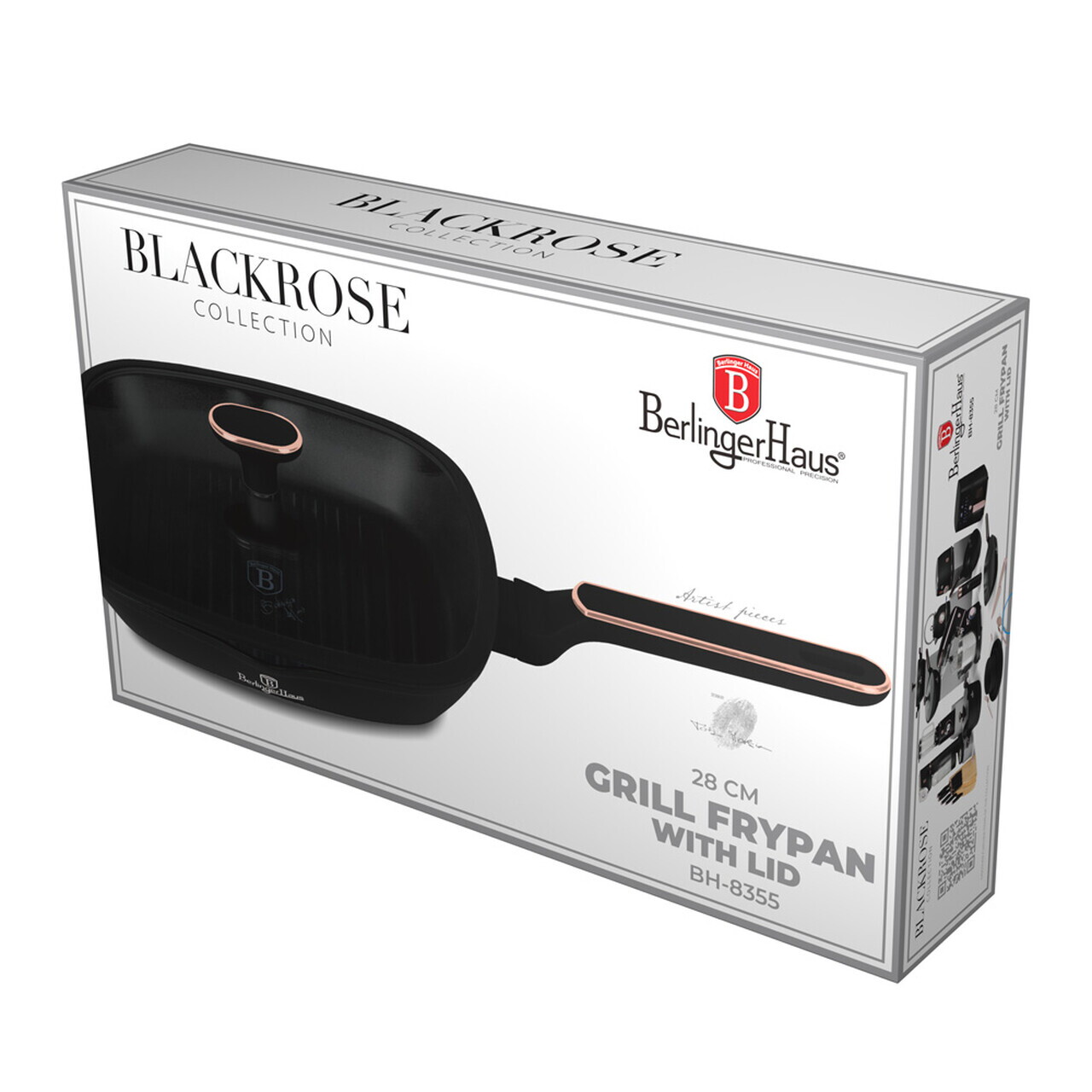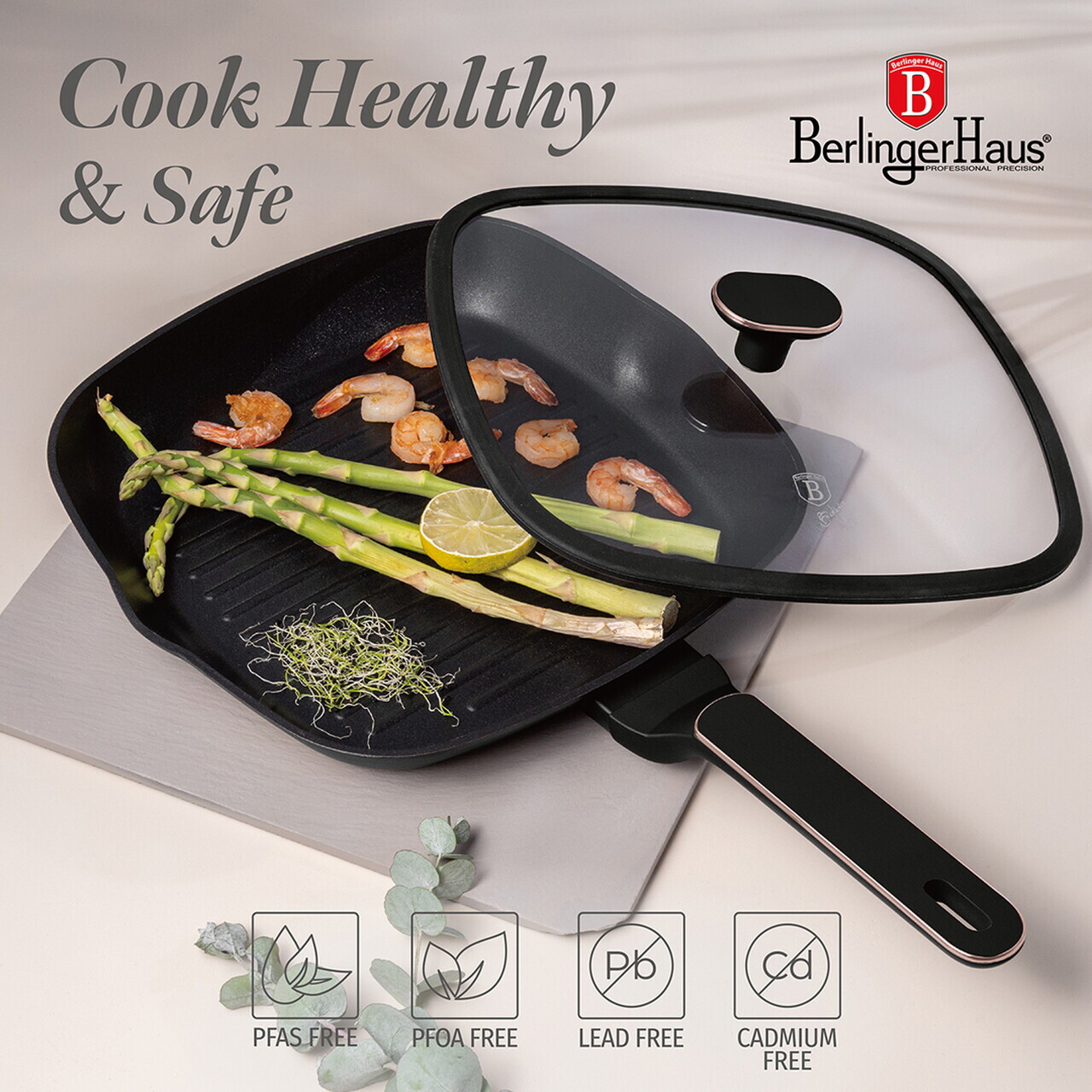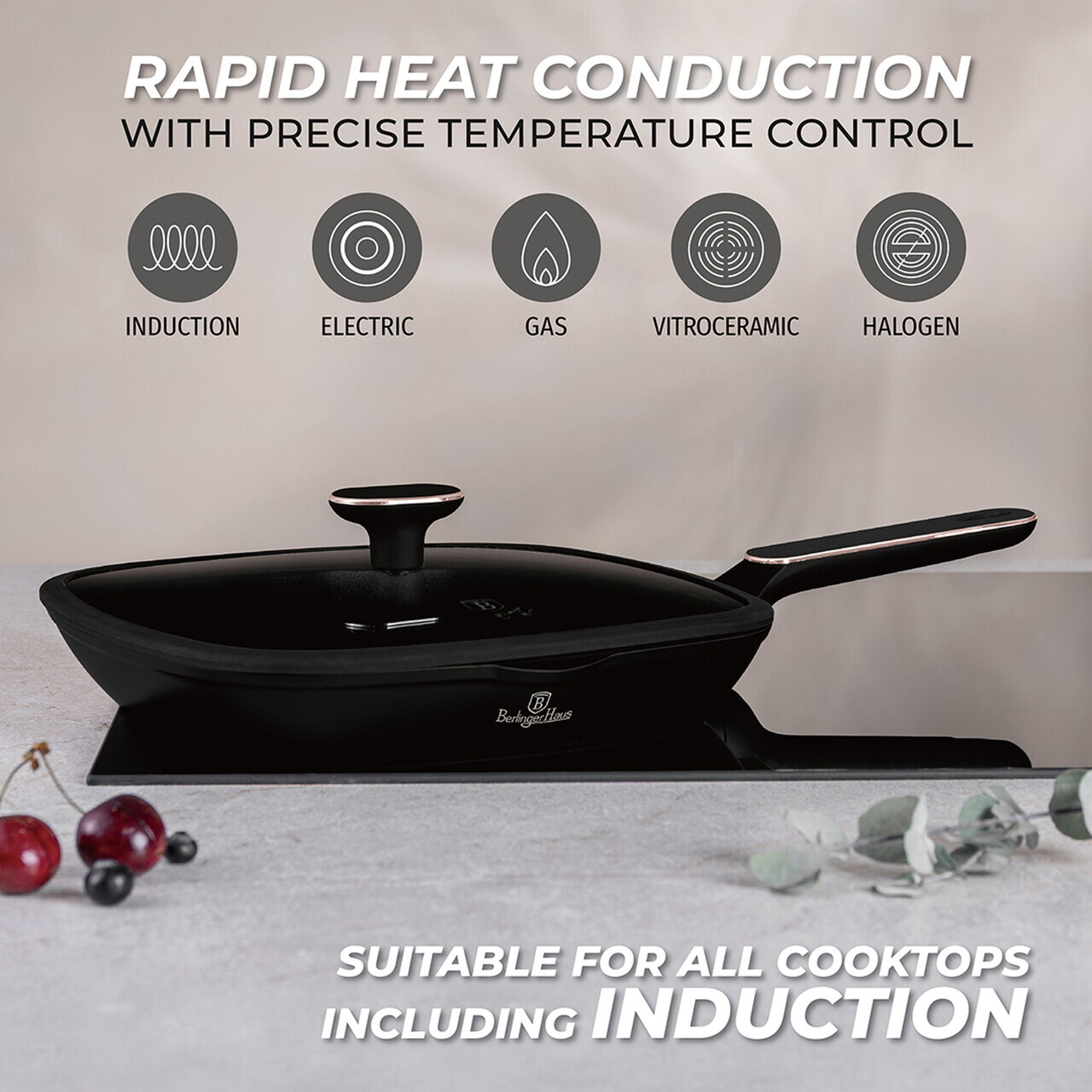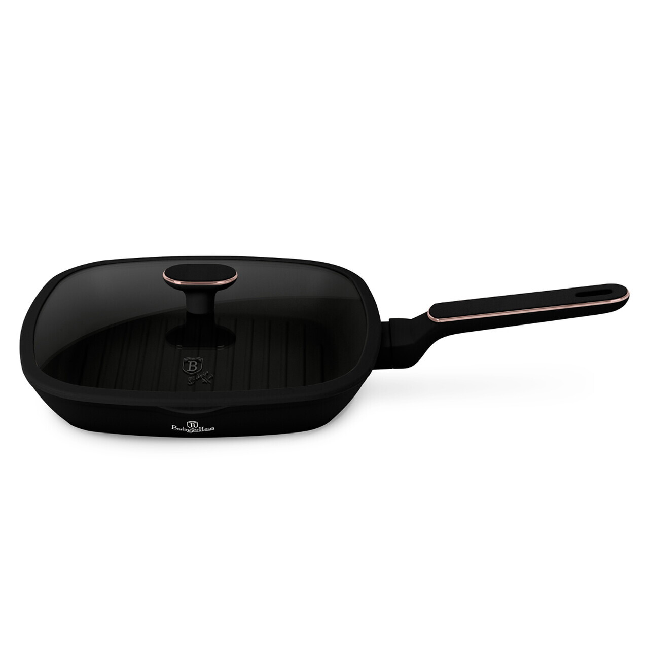 Tigaie grill cu capac Berlinger Haus, Black Rose, 28 cm, 2.1 L, aluminiu forjat, negru mat