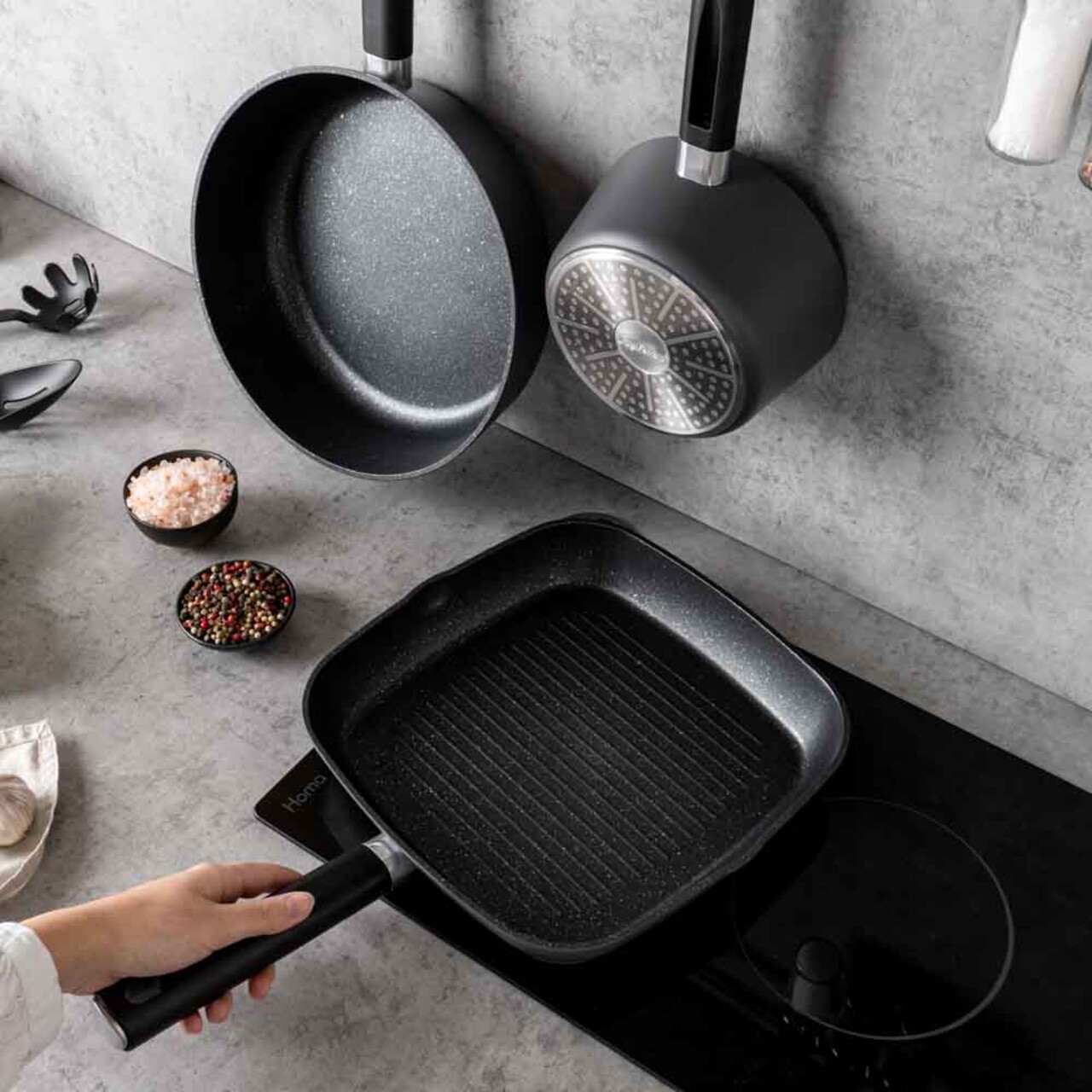 Tigaie grill Regina, Luigi Ferrero, 26x26 cm, aluminiu forjat