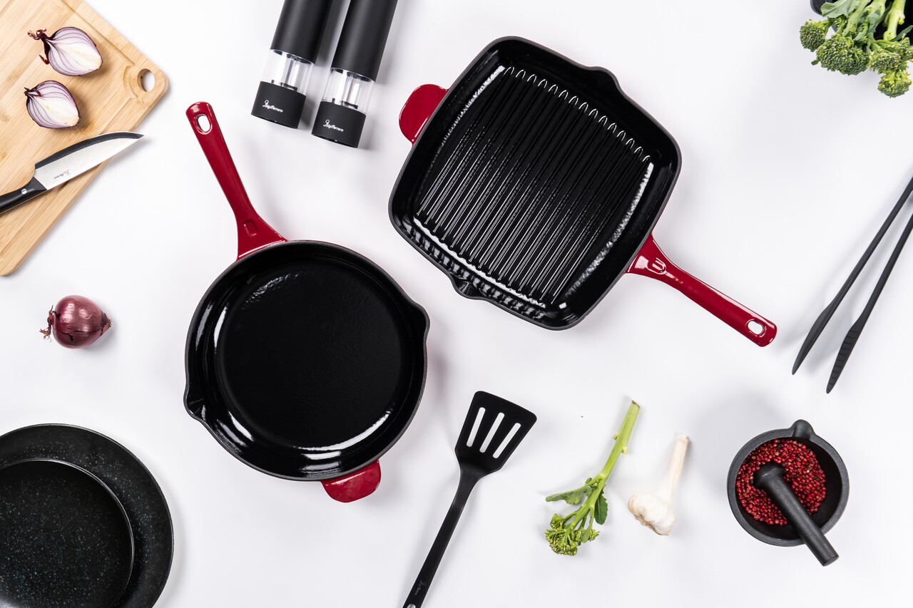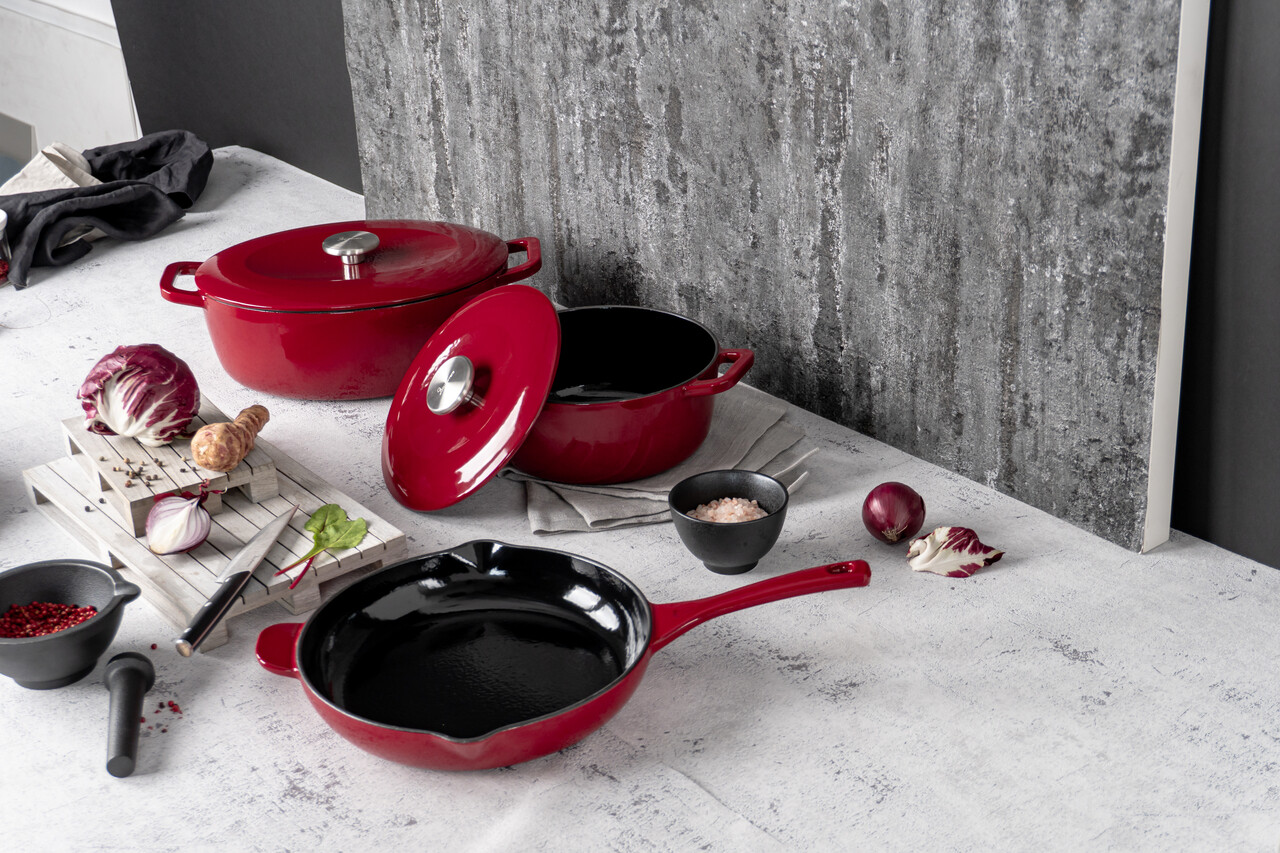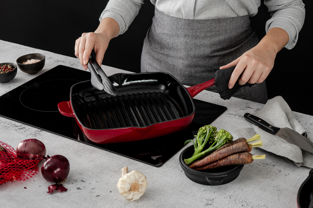 Manerele din fonta se incing in timpul gatitului sau la cuptor - folositi intotdeauna un prosop gros sau manusi de cuptor pentru a ridica vasul.
