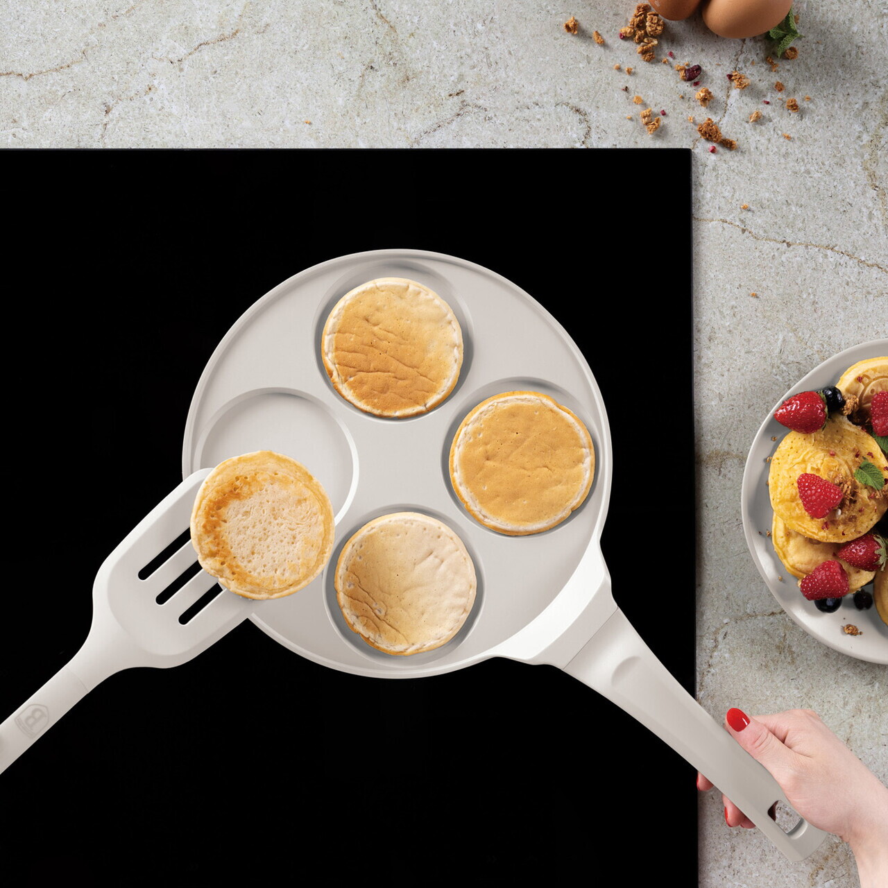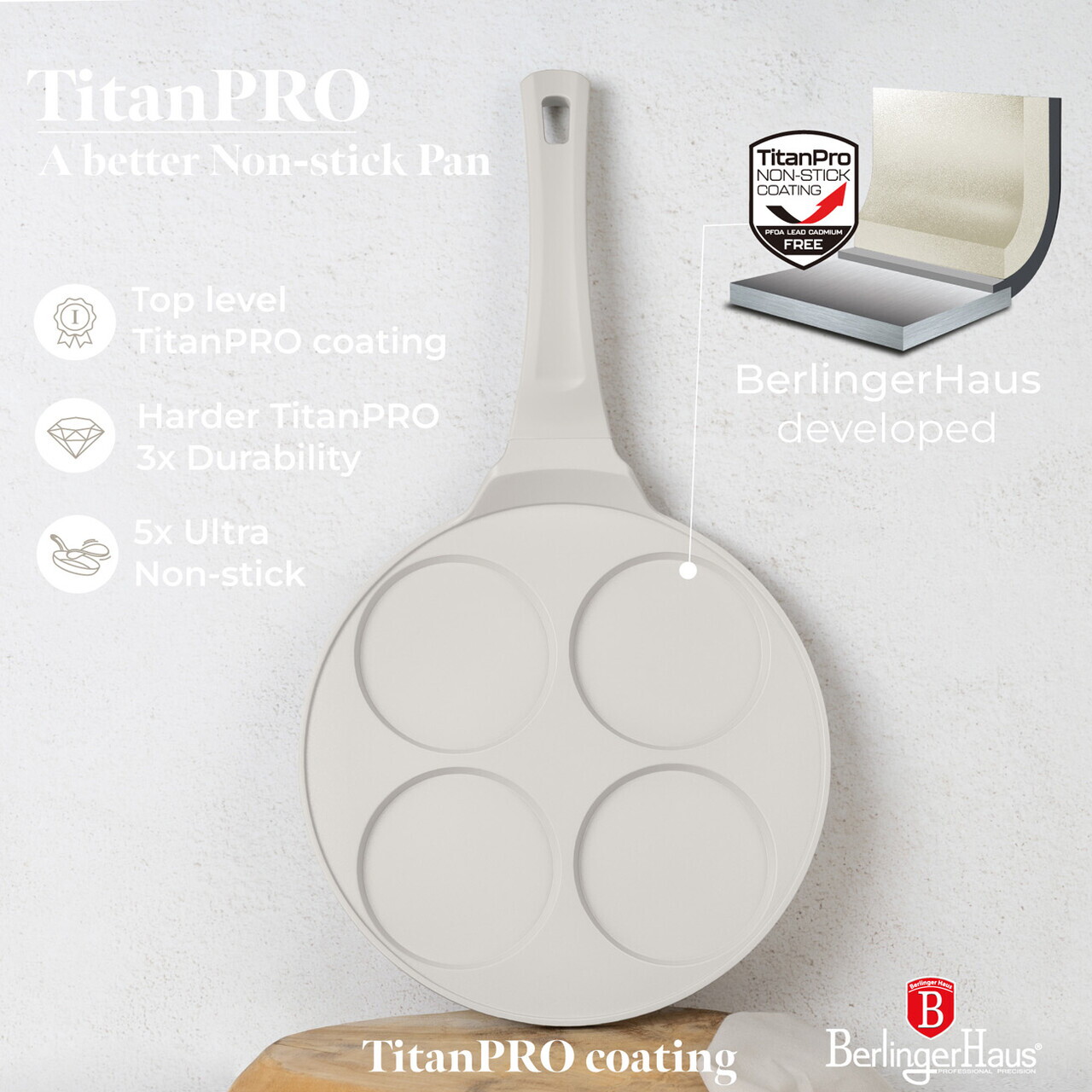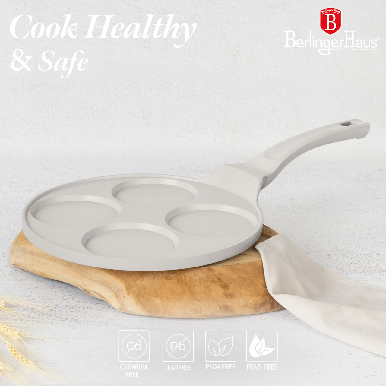 Tigaie pentru clatite, 4 forme Berlinger Haus, Sahara, 26 cm, aluminiu turnat, crem mat